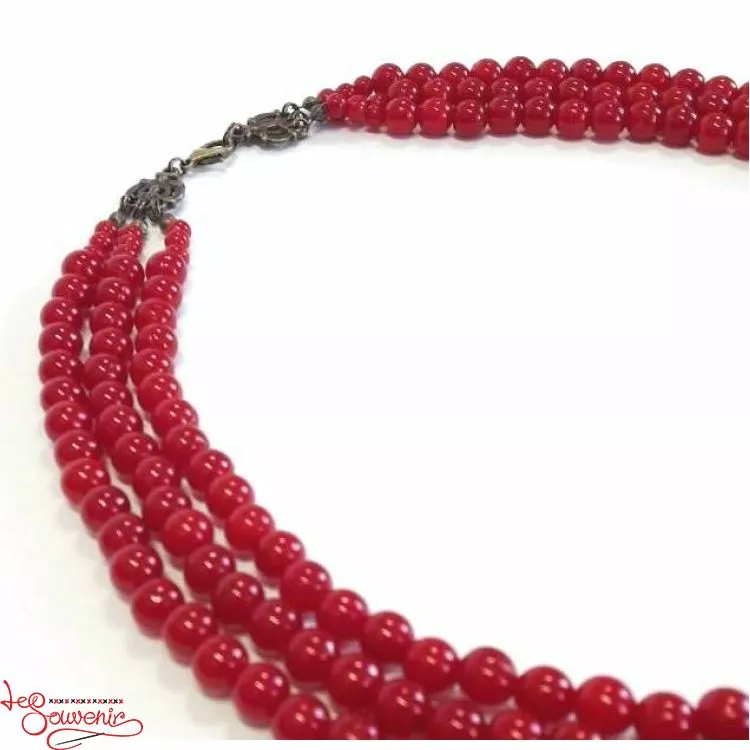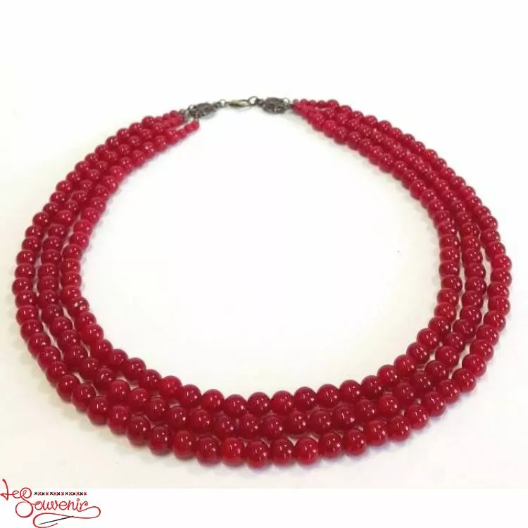 Червоні буси 3-ка від гуртівні Leosouvenir – це красиво і вишукано на тлі української вишиванки.
