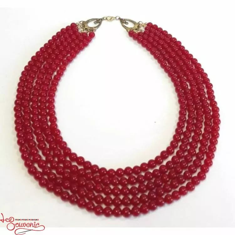 Червоні буси 5-ка від гуртівні Leosouvenir – це красиво і вишукано на тлі української вишиванки.