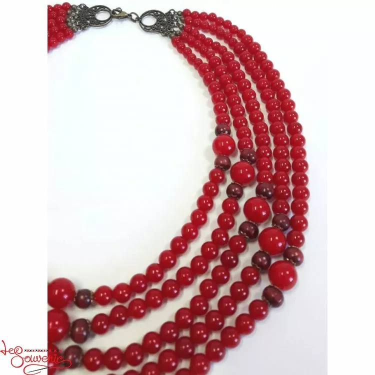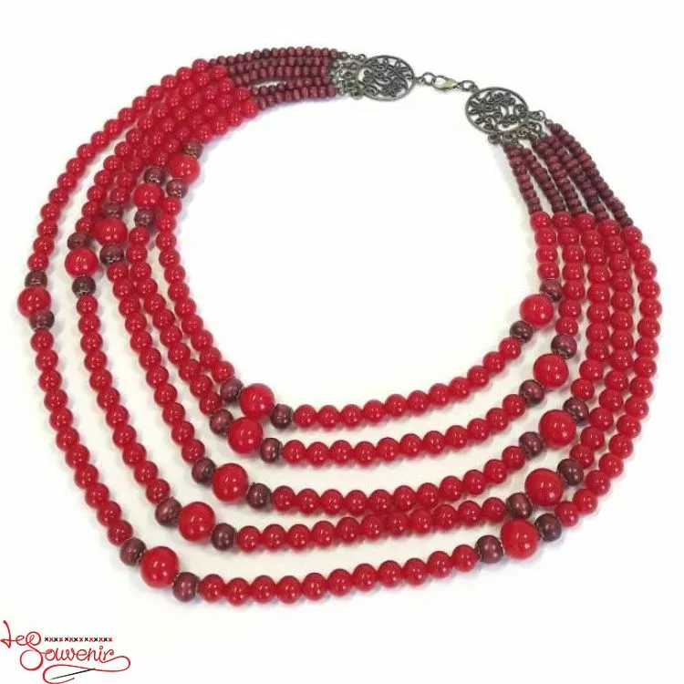 Червоні буси з чорними намистинками 5-ка від гуртівні Leosouvenir – це красиво і вишукано на тлі української вишиванки.