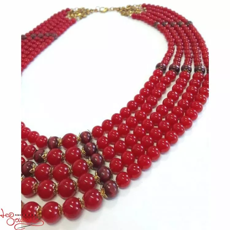 Червоні буси з чорними намистинками 5-ка від гуртівні Leosouvenir – це красиво і вишукано на тлі української вишиванки.