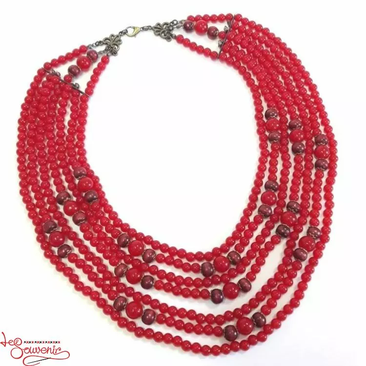 Червоні буси з чорними намистинками 7-ка від гуртівні Leosouvenir – це красиво і вишукано на тлі української вишиванки.