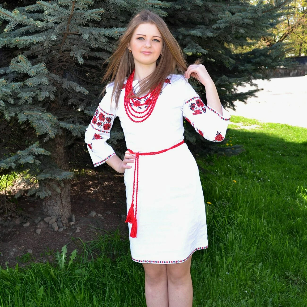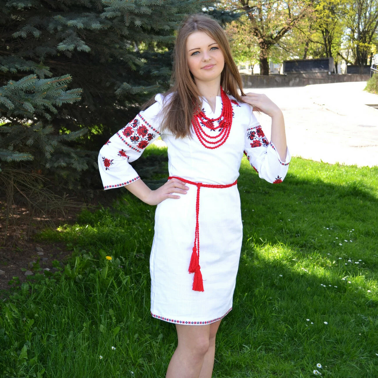 Жіноча сукня, делікатно виконана на льоні із оригінальним орнаментом нитками червоно-чорних кольорів з пояском, від гуртівні Leosouvenir чудово підкреслить Ваш неперевершений смак і стиль.