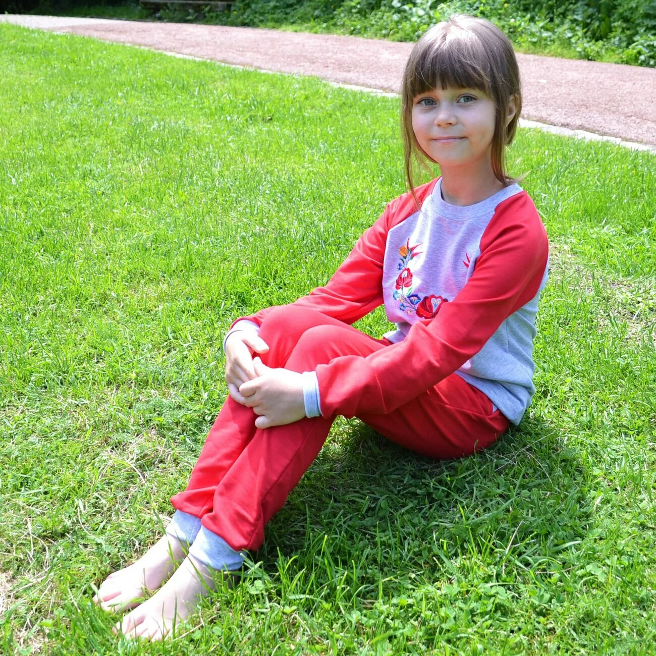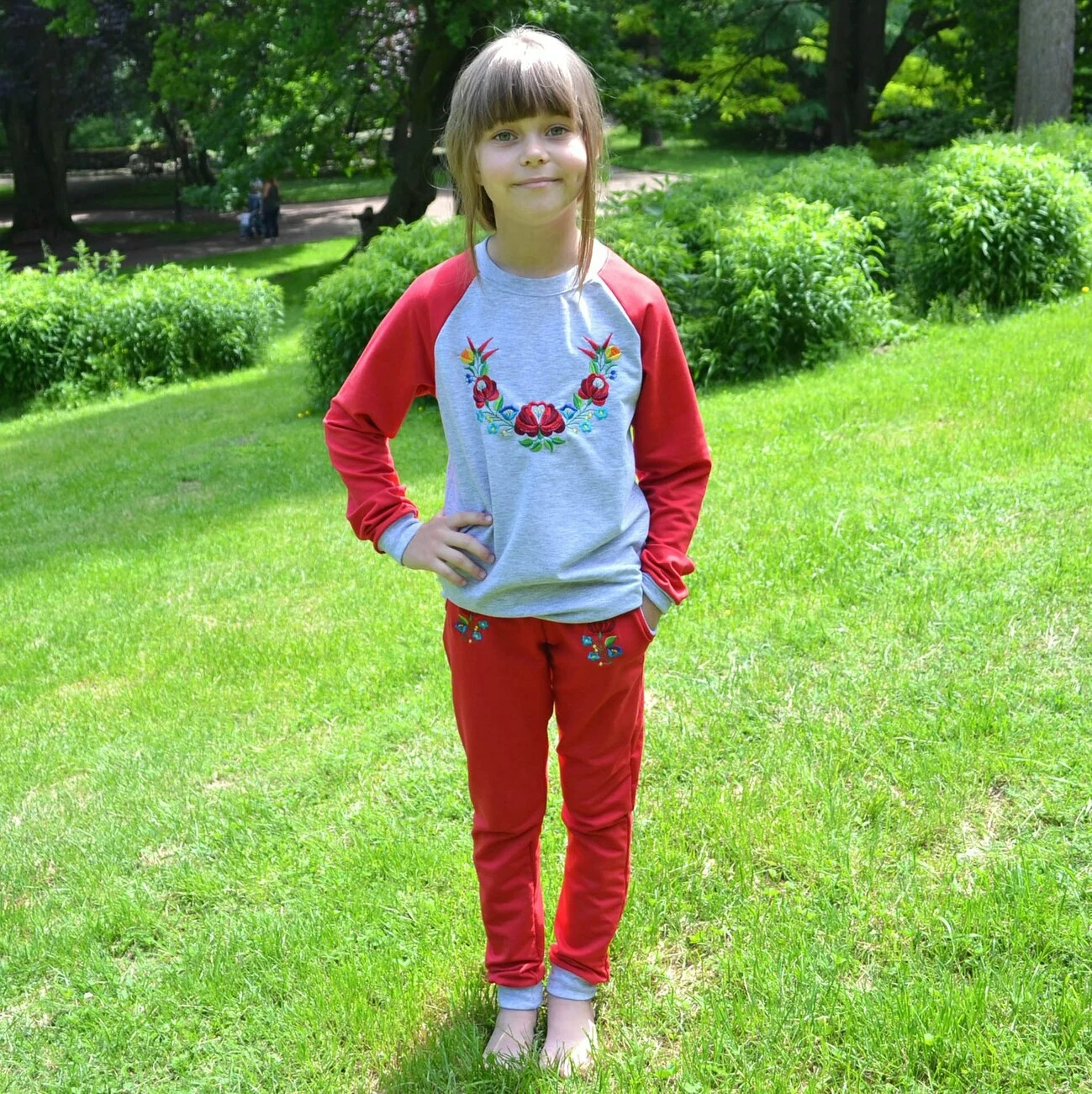 Дитячий сіро-червоний спортивний костюм із вишитим візерунком від гуртівні Leosouvenir чудово пасуватиме Вашій малечі.