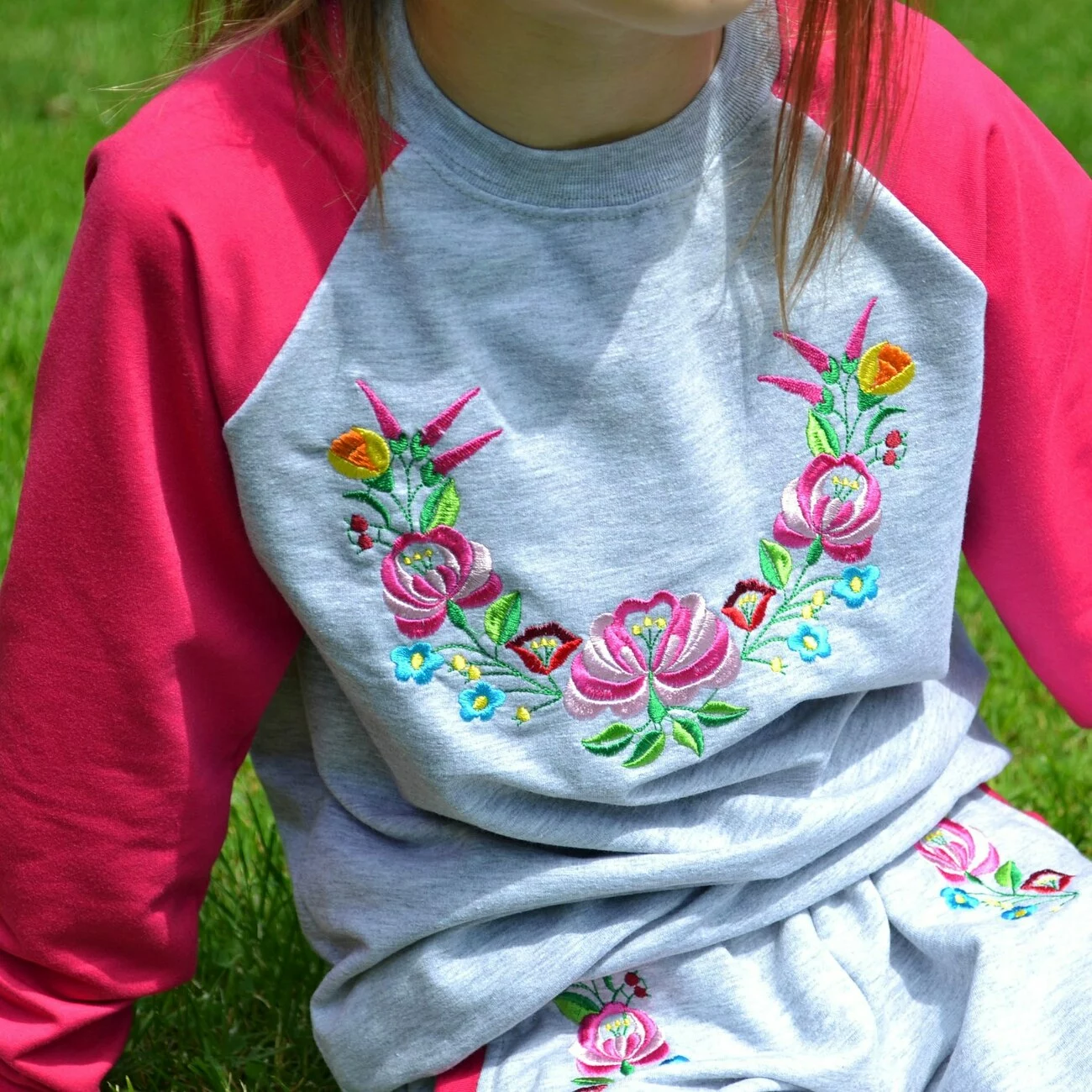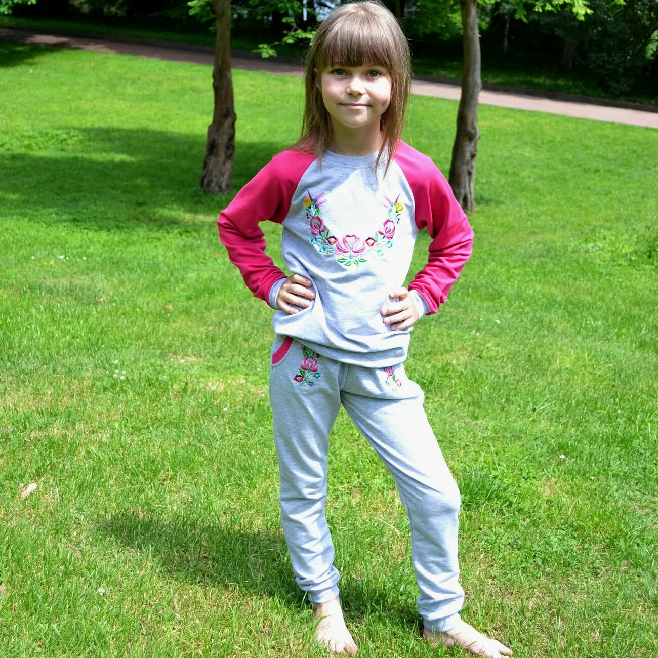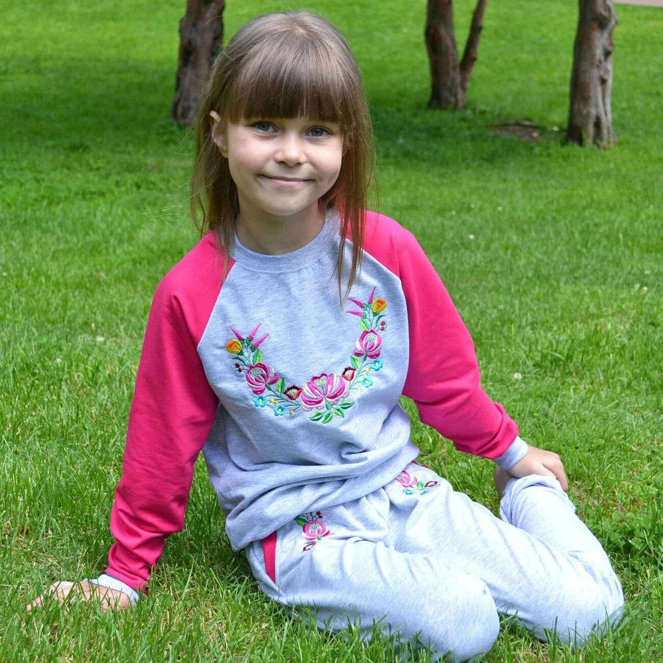 Дитячий сіро-рожевий спортивний костюм із вишитим візерунком від гуртівні Leosouvenir чудово пасуватиме Вашій малечі.