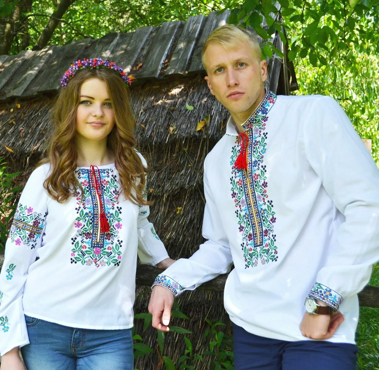 В серці вишиванок Галицька краса - багатий орнамент прикрашений оригінальною вишивкою. Яскраве поєднання кольорів створює унікальний вигляд, завдяки чому вишиванки для двох від гуртівні Leosouvenir мають багатий та святковий вигляд.