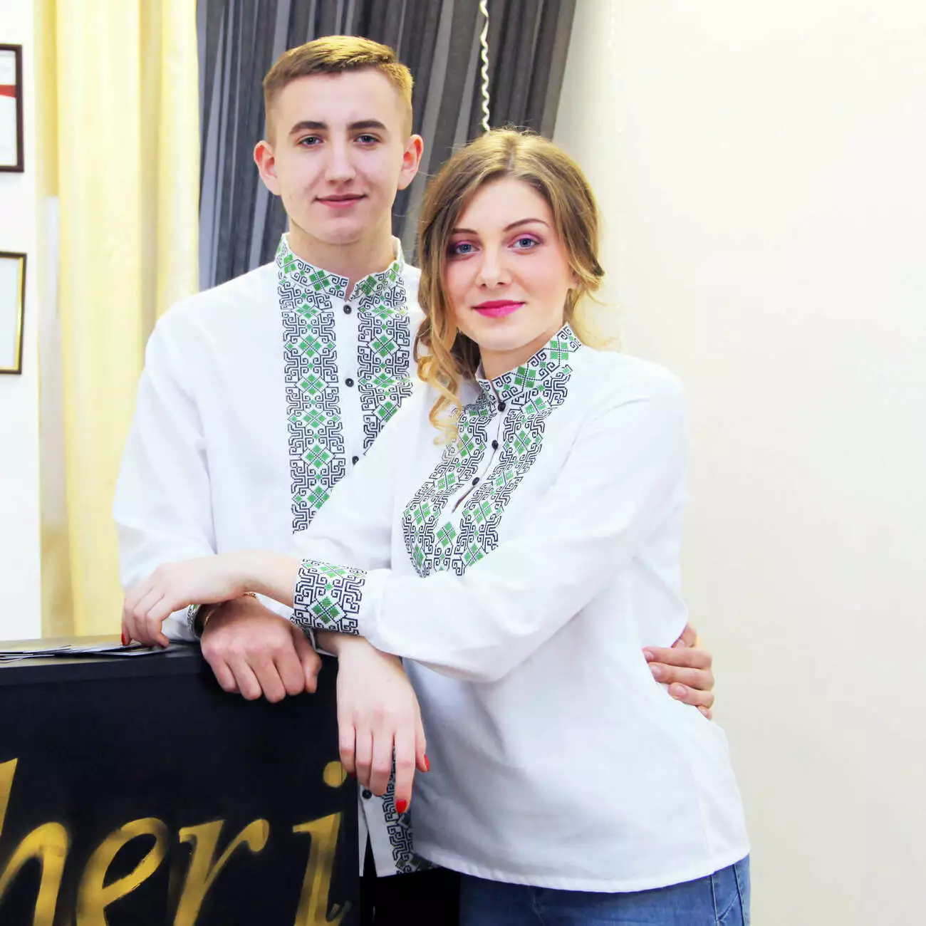 В серці вишиванок Зелений орнамент - багатий орнамент прикрашений оригінальною вишивкою. Яскраве поєднання кольорів створює унікальний вигляд, завдяки чому вишиванки для двох від гуртівні Leosouvenir мають багатий та святковий вигляд.