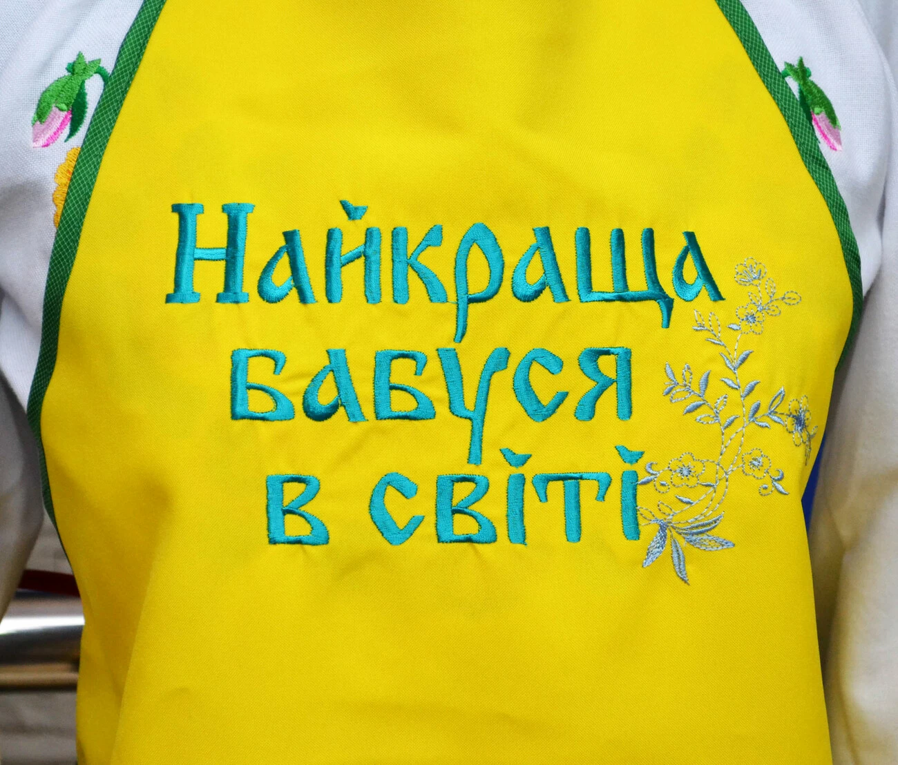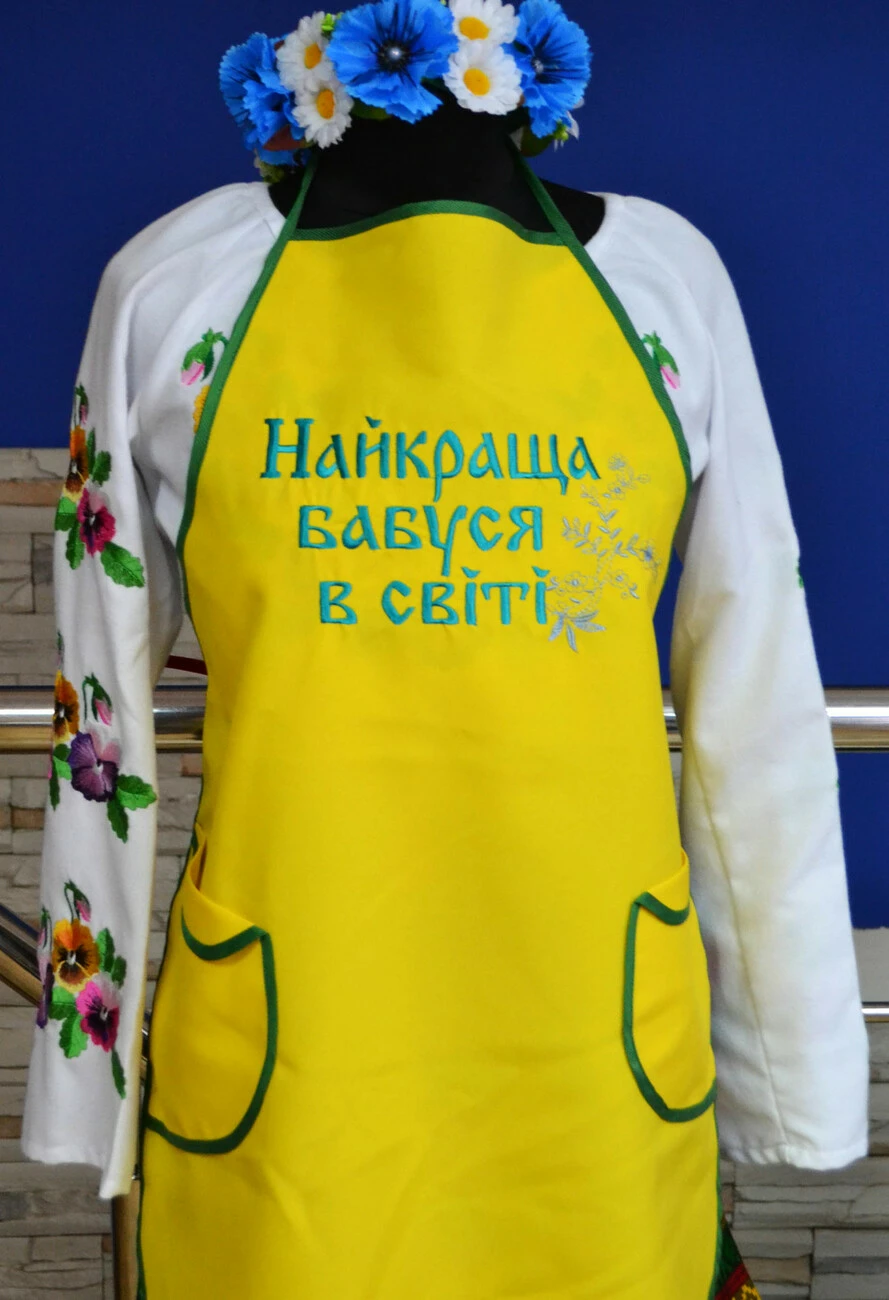 Вишитий фартух з оригінальним надписом «Найкраща бабуся в світі» від гуртівні Leosouvenir буде чудовим подарунком для Ваших близьких.