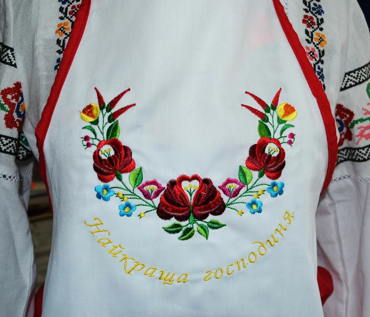 Машинна вишивка, червоний колір.