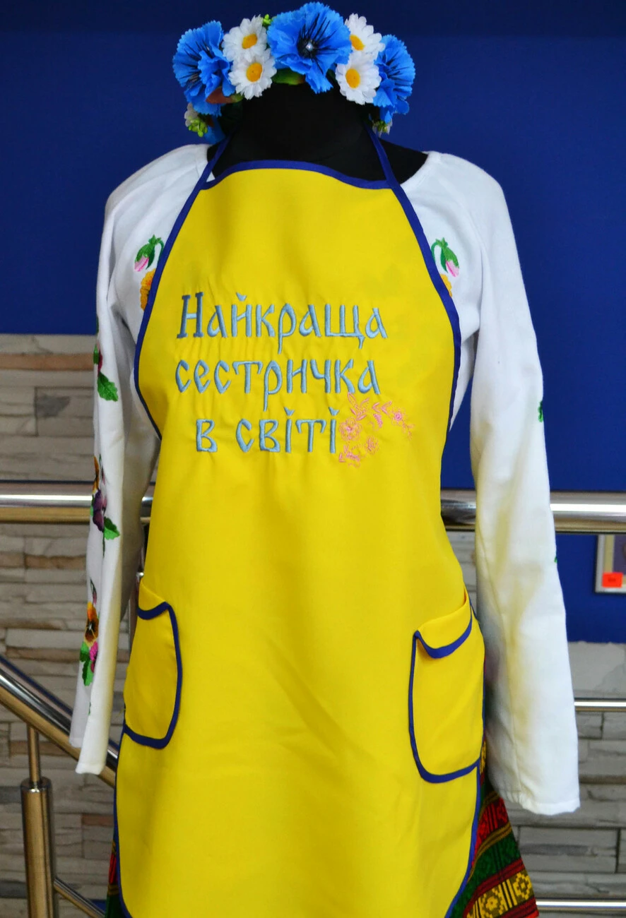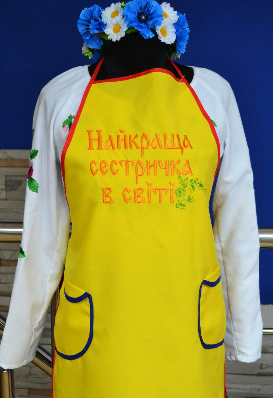 Вишитий фартух з оригінальним надписом «Найкраща сестричка в світі» від гуртівні Leosouvenir буде чудовим подарунком для Ваших близьких.