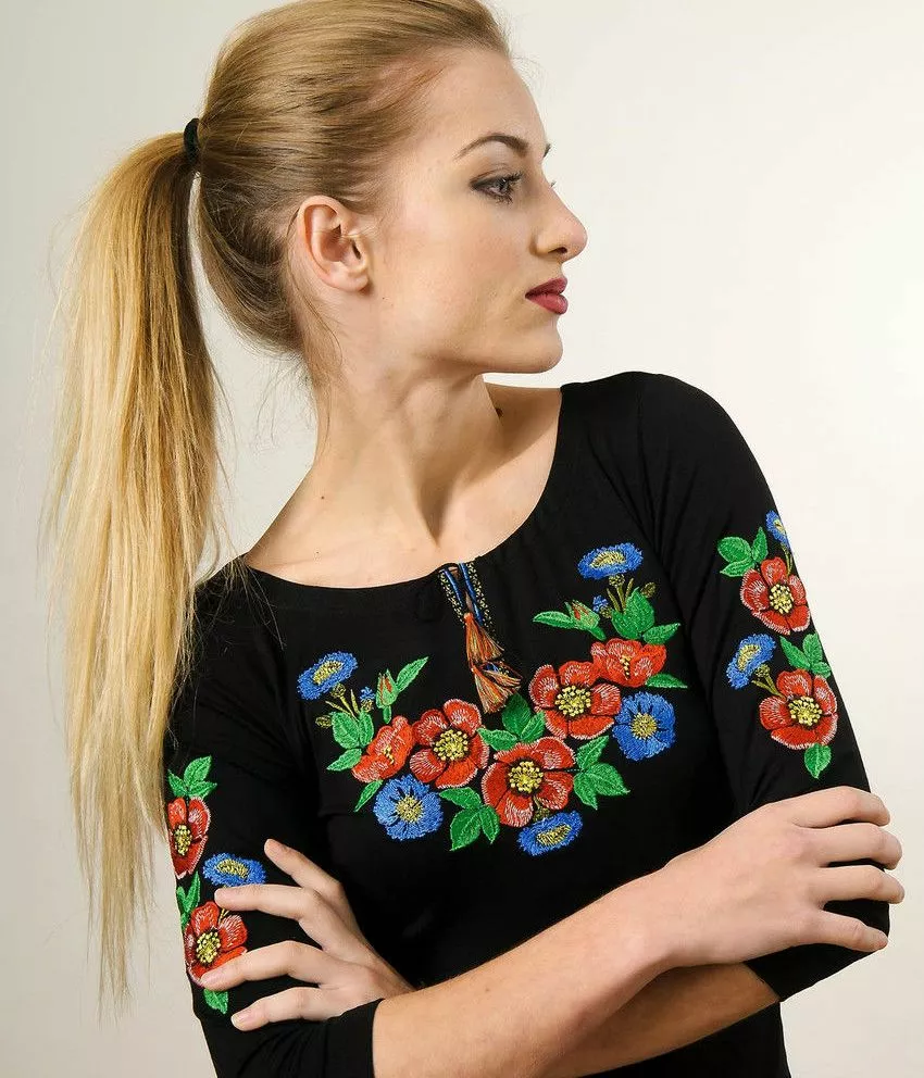Машинна вишивка, середній(3/4) рукав з вишивкою.