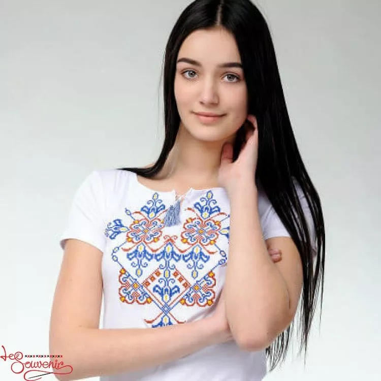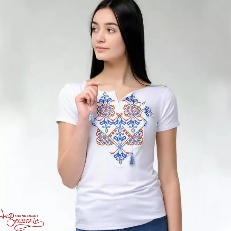 Жіноча вишита футболка оздоблена красивим орнаментом на білому тлі від гуртівні Leosouvenir чудово підкреслить Ваш неперевершений смак і стиль.