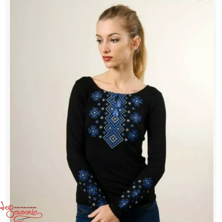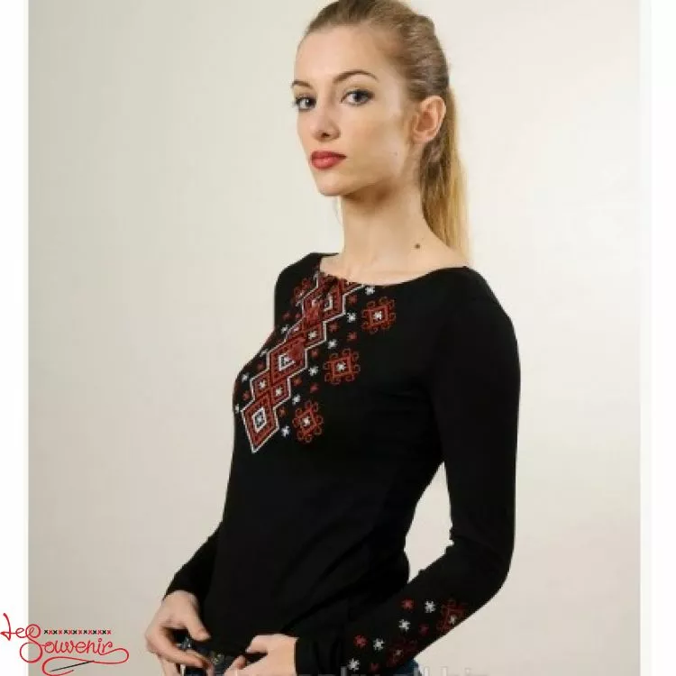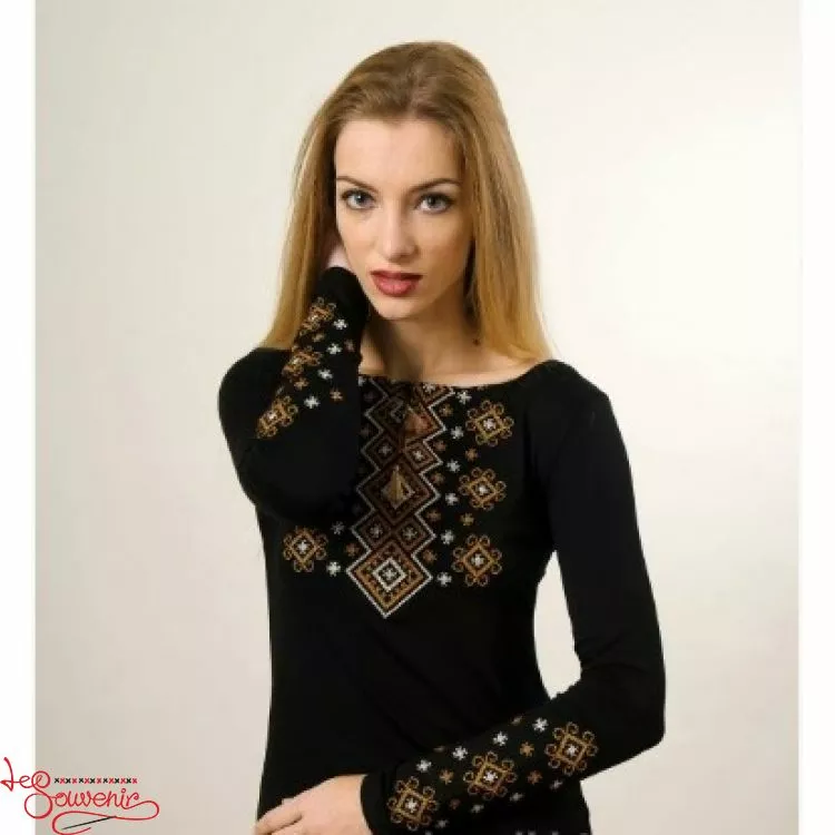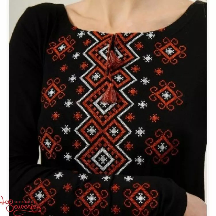 Жіноча вишита футболка оздоблена яскравим широким орнаментом на чорному тлі від гуртівні Leosouvenir чудово підкреслить Ваш неперевершений смак і стиль.