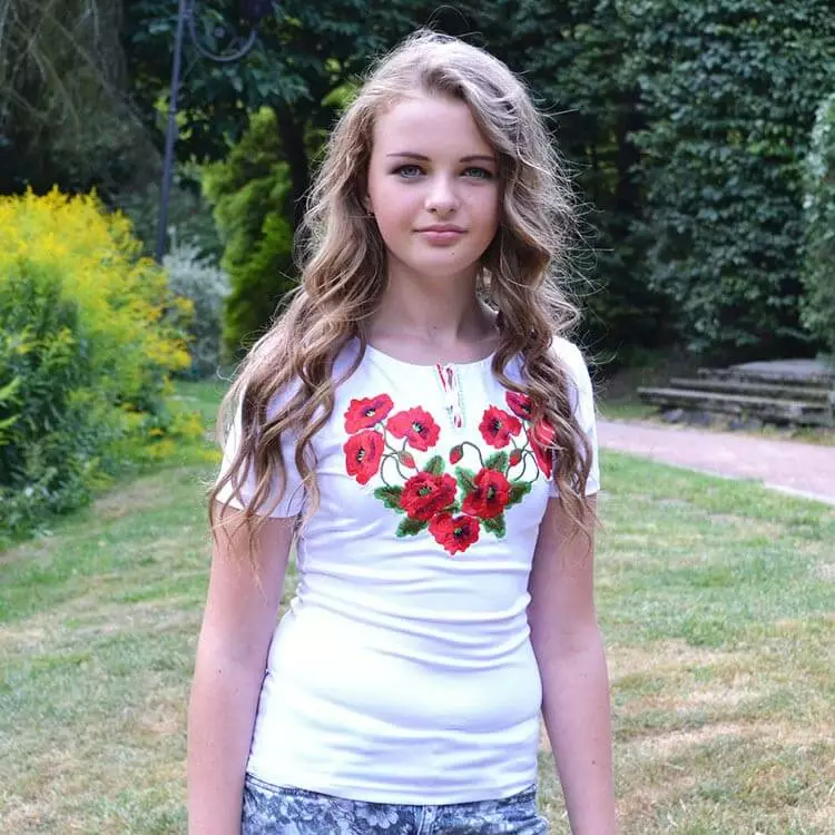Жіноча вишита футболка оздоблена яскравою композицією з червоних маків на білому тлі від гуртівні Leosouvenir чудово підкреслить Ваш неперевершений смак і стиль.