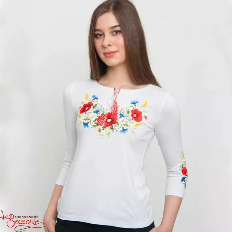 Машинна вишивка, середній(3/4) рукав з вишивкою.