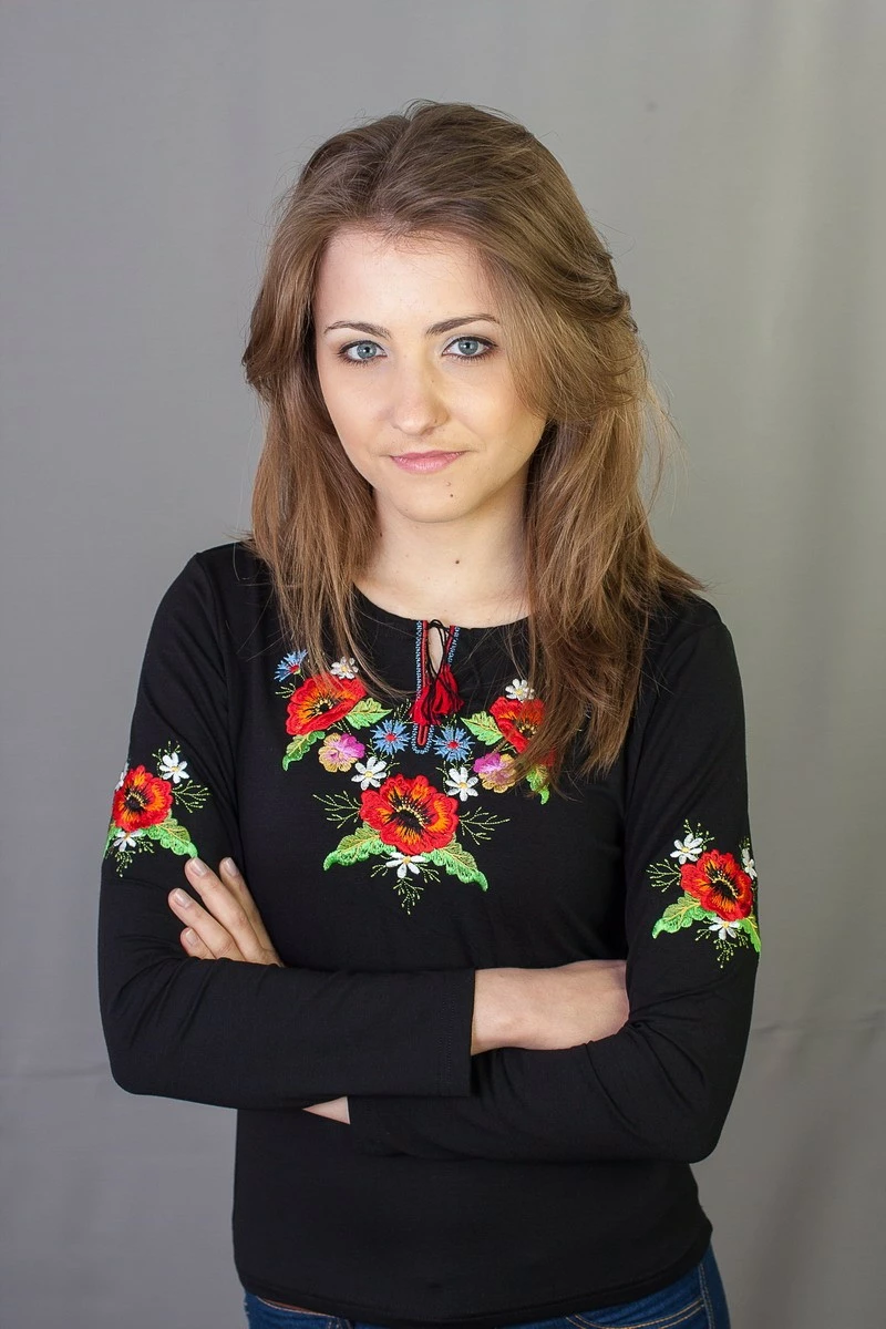 Жіноча вишита футболка оздоблена квітковою вишивкою гладдю на чорному тлі від гуртівні Leosouvenir чудово підкреслить Ваш неперевершений смак і стиль.