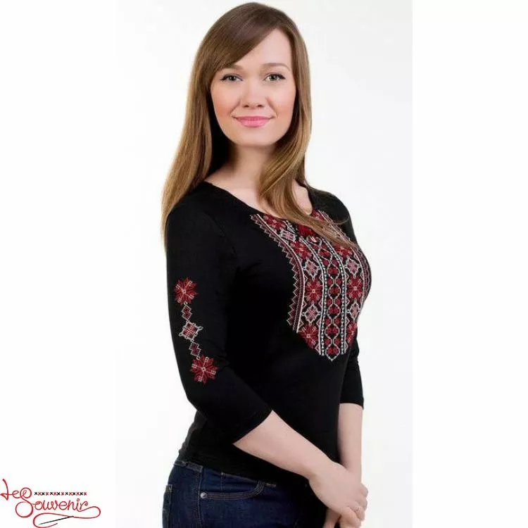 Машинна вишивка хрестиком, середній(3/4) рукав з вишивкою.