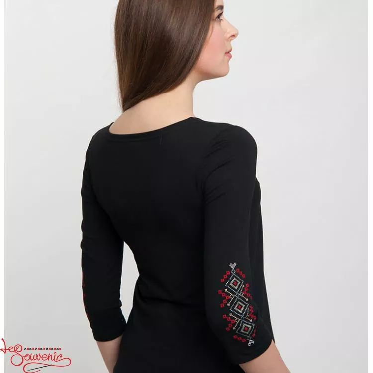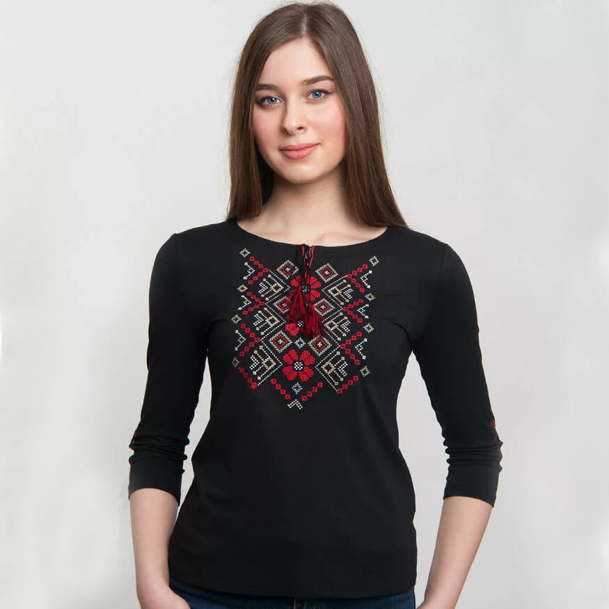 Жіноча вишита футболка оздоблена яскравим візерунком на чорному тлі від гуртівні Leosouvenir чудово підкреслить Ваш неперевершений смак і стиль.