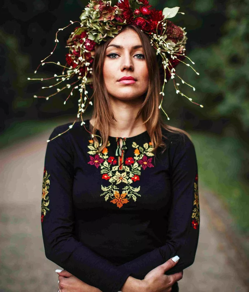 Жіноча вишита футболка оздоблена яскравим квітковим візерунком у теплих тонах на чорному тлі від гуртівні Leosouvenir чудово підкреслить Ваш неперевершений смак і стиль.