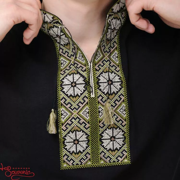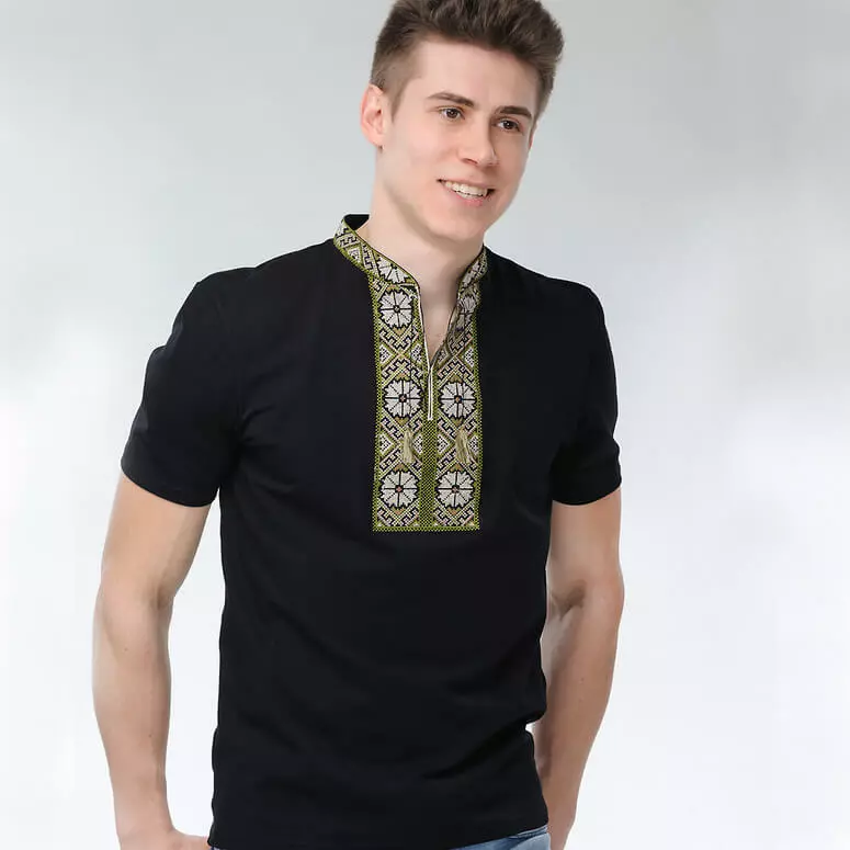 Чоловіча вишита футболка оздоблена вишивкою зеленого кольору на чорному тлі від гуртівні Leosouvenir чудово підкреслить Ваш неперевершений смак і стиль.