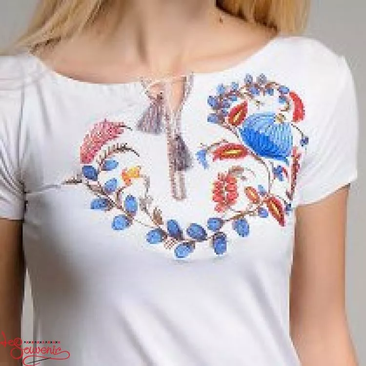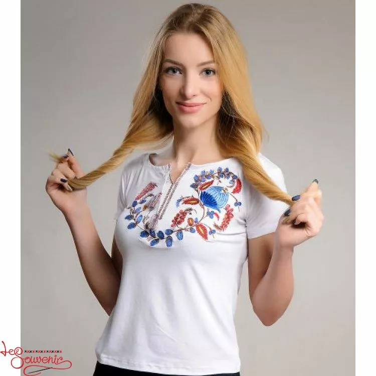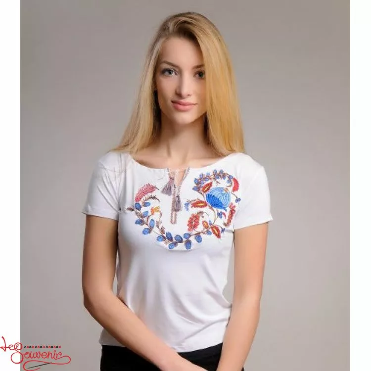 Жіноча вишита футболка оздоблена красивим візерунком на білому тлі від гуртівні Leosouvenir чудово підкреслить Ваш неперевершений смак і стиль.