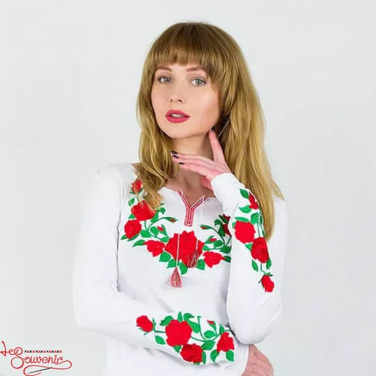 Жіноча вишита футболка оздоблена яскравим вишитим букетом квітів на білому тлі від гуртівні Leosouvenir чудово підкреслить Ваш неперевершений смак і стиль.