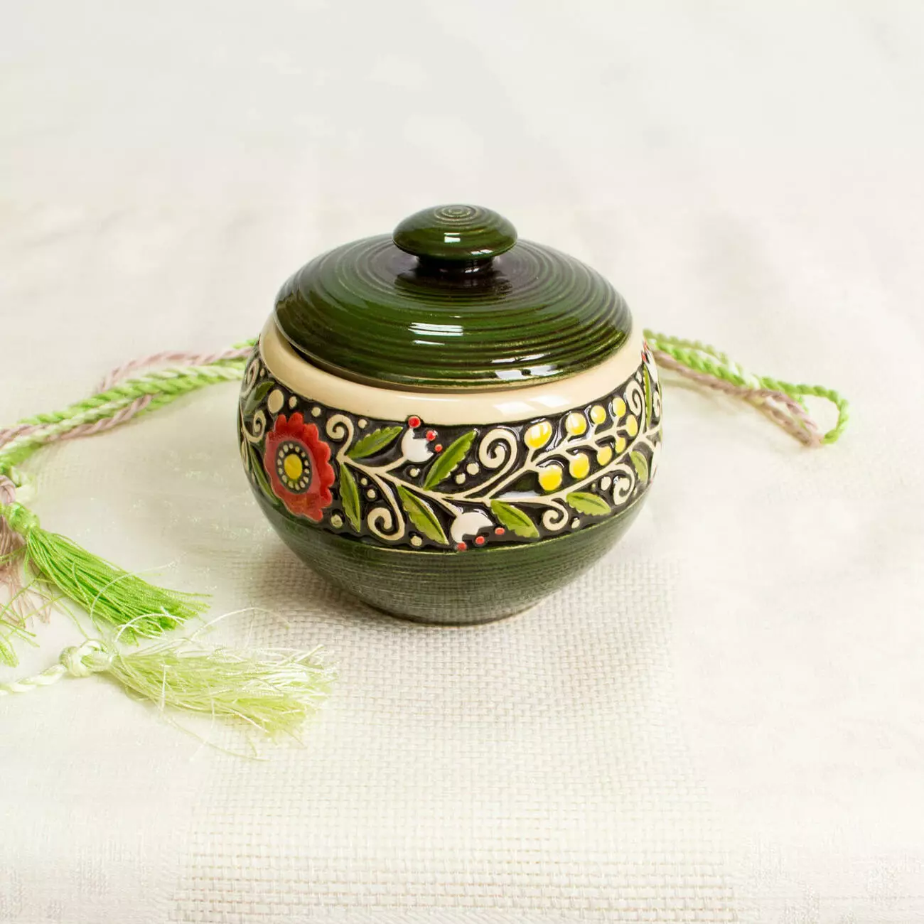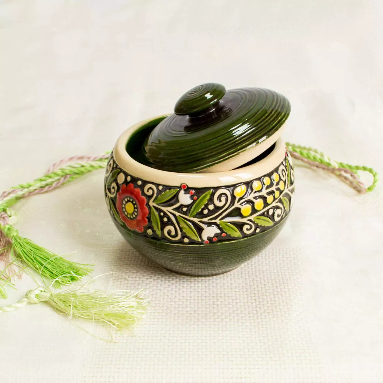 Керамічний горщик для чанахів зелений ручної роботи від гуртівні Leosouvenir чудово пасуватиме до Вашого столу.