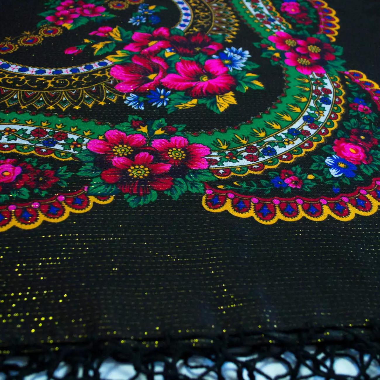 Модель: Хустка чорна з квітами з люрексом.