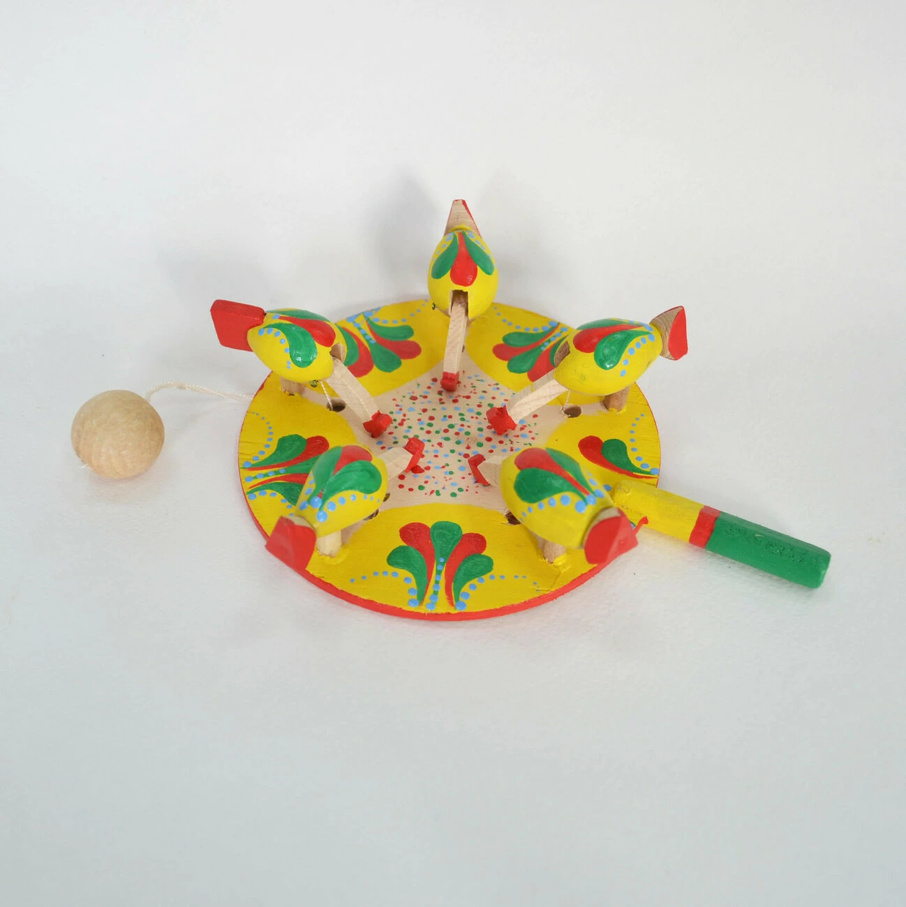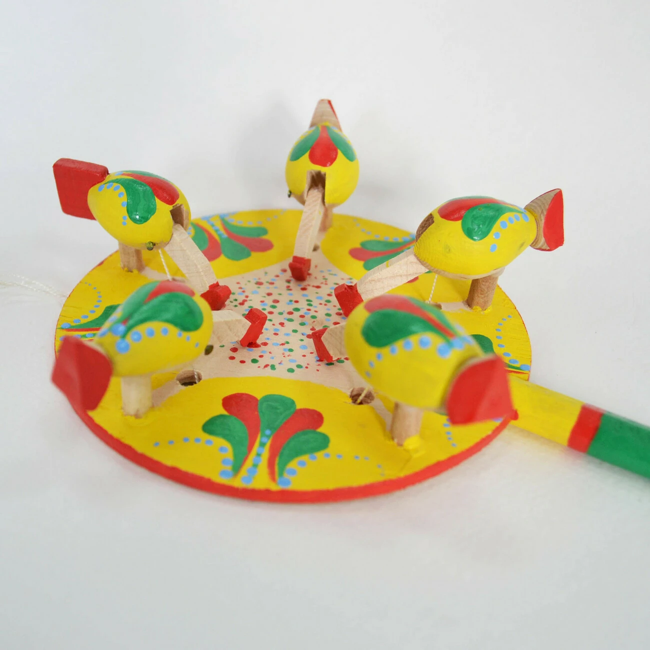 Українська традиційна кольорова дерев'яна іграшка у вигляді курочок, які створюють особливий звук, якщо покрутити рукою іграшку, від гуртівні Leosouvenir буде чудовим сувеніром для Вас і Ваших близьких.