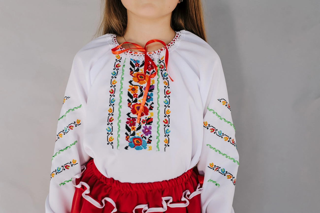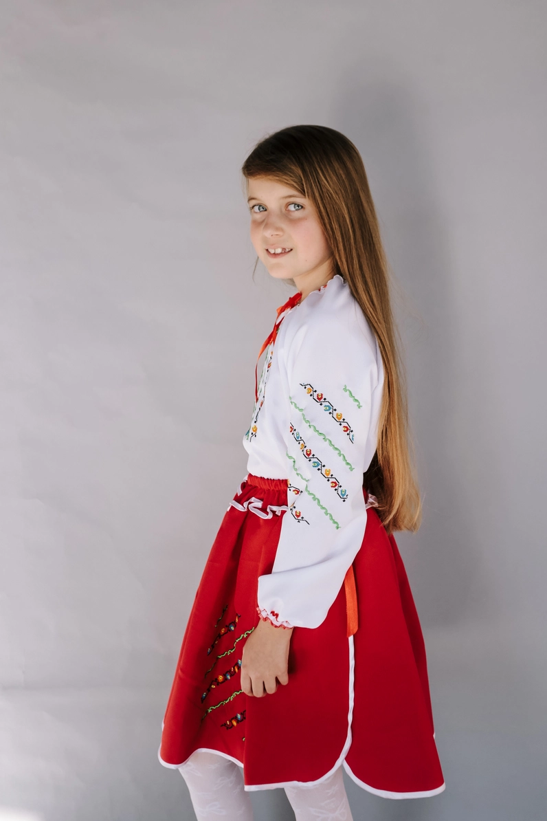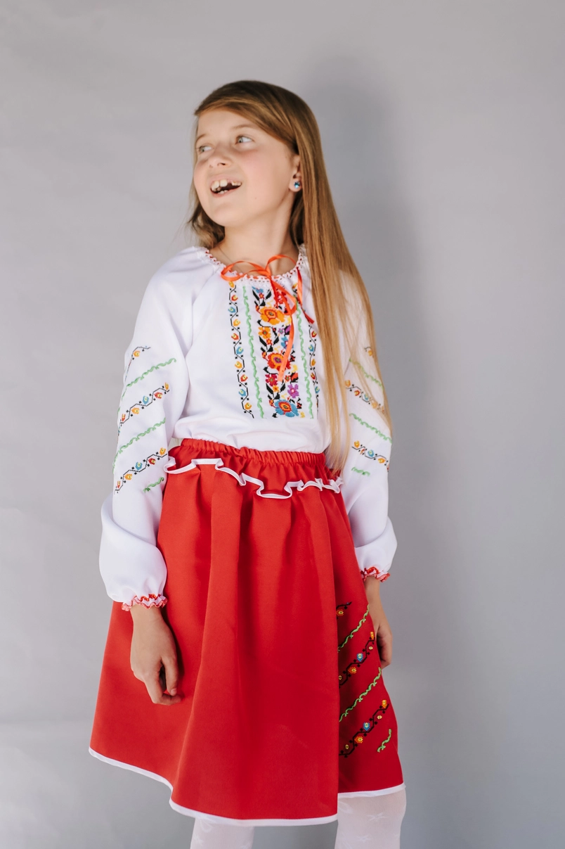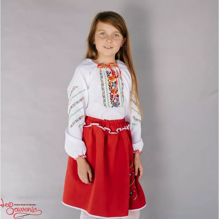 Дитячий вишитий костюм білого кольору із оригінальним візерунком від гуртівні Leosouvenir створить неперевершений вигляд Вашої дитини.