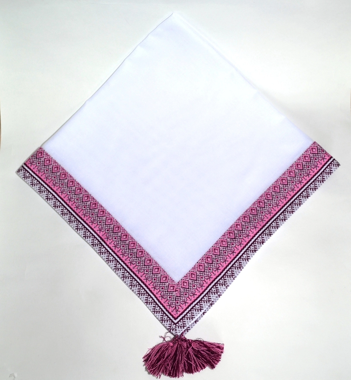 Крижмо для хрещення квадратної форми, навколо обшите вишивкою рожевого кольору, від гуртівні Leosouvenir зробить вигляд Вашої малечі святковим і неповторним.