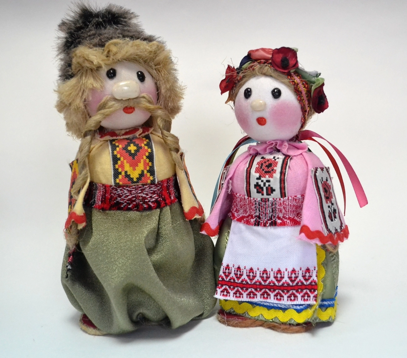 Тканина: льон, домоткане полотно, кольорові стрічки, шерстяні нитки.
