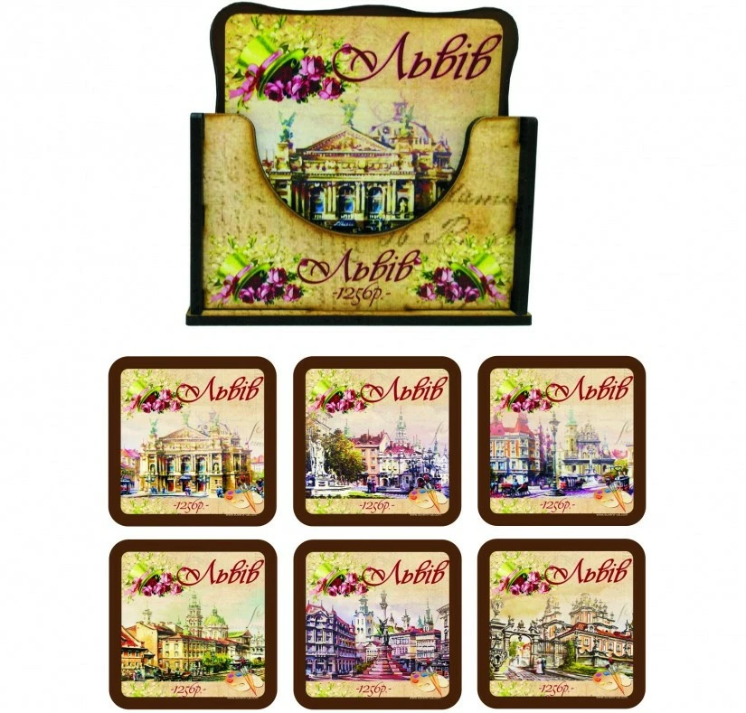 Набір дерев'яних підставок від гуртівні Leosouvenir буде чудовим подарунком для Вас і Ваших близьких. Складається із 6 дерев'яних підставок та коробочки.