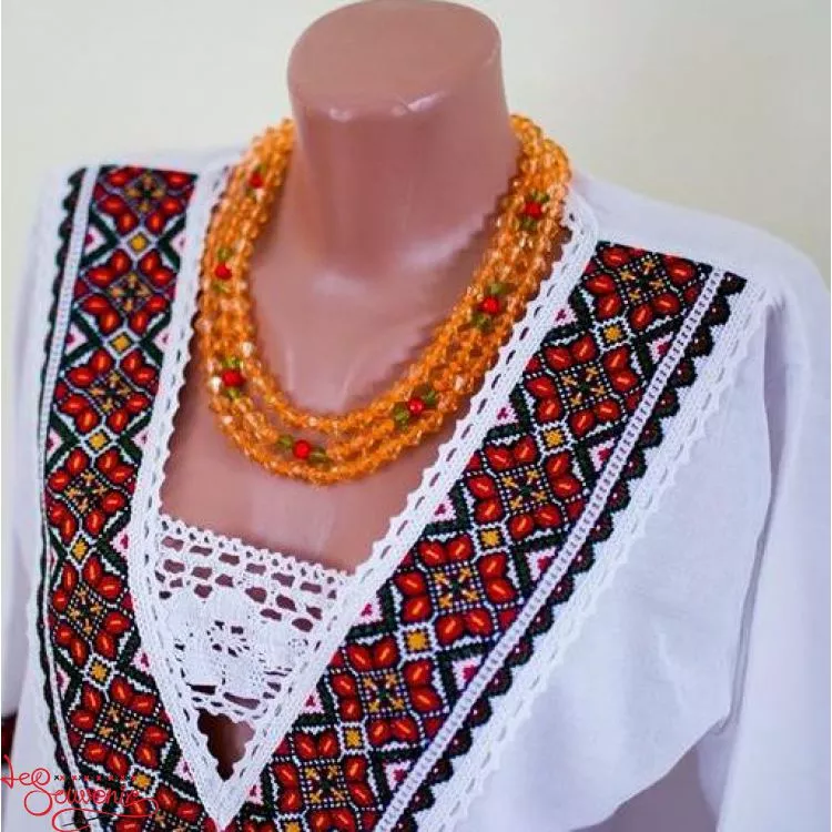 Кольорові буси з прозорими намистинками 3-ка від гуртівні Leosouvenir – це красиво і вишукано на тлі української вишиванки.