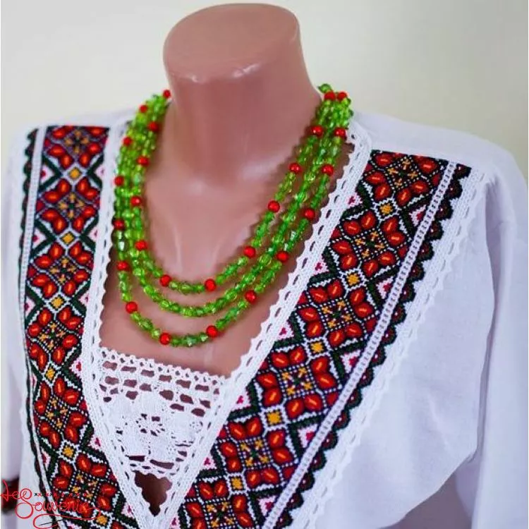 Кольорові буси з прозорими намистинками 3-ка від гуртівні Leosouvenir – це красиво і вишукано на тлі української вишиванки.