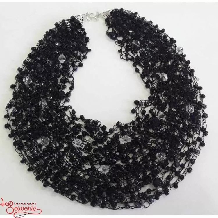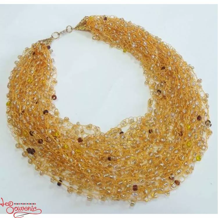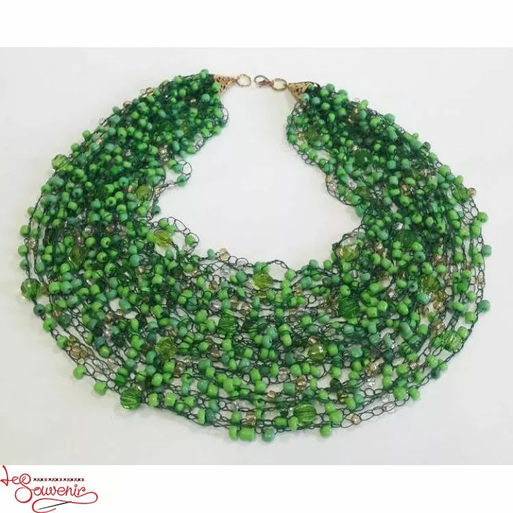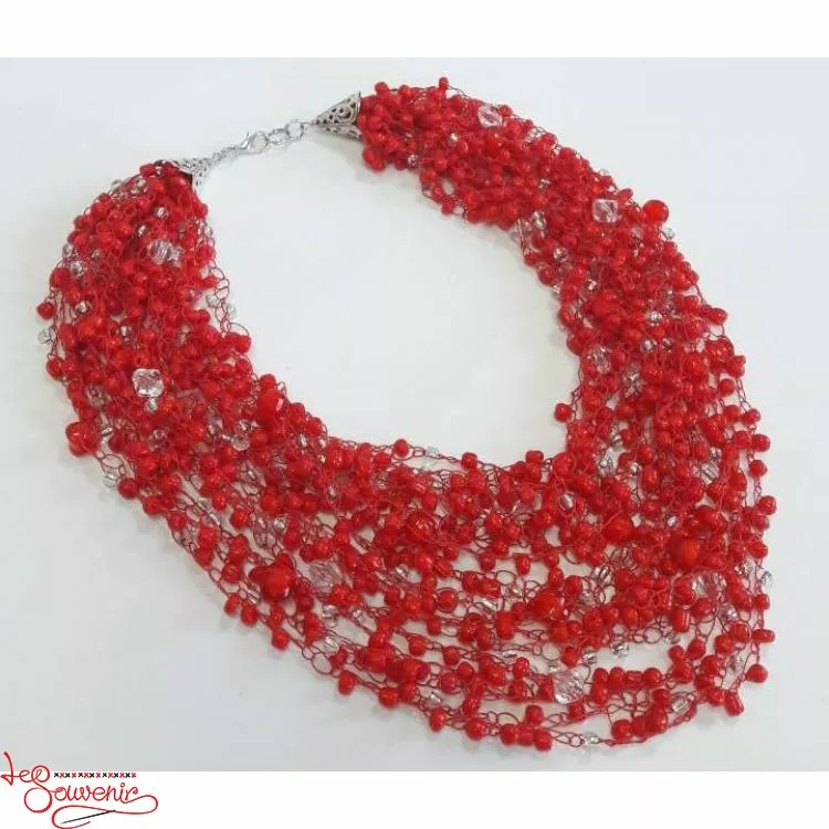 Яскраве намисто з дрібними намистинками від гуртівні Leosouvenir – це красиво і вишукано на тлі української вишиванки.