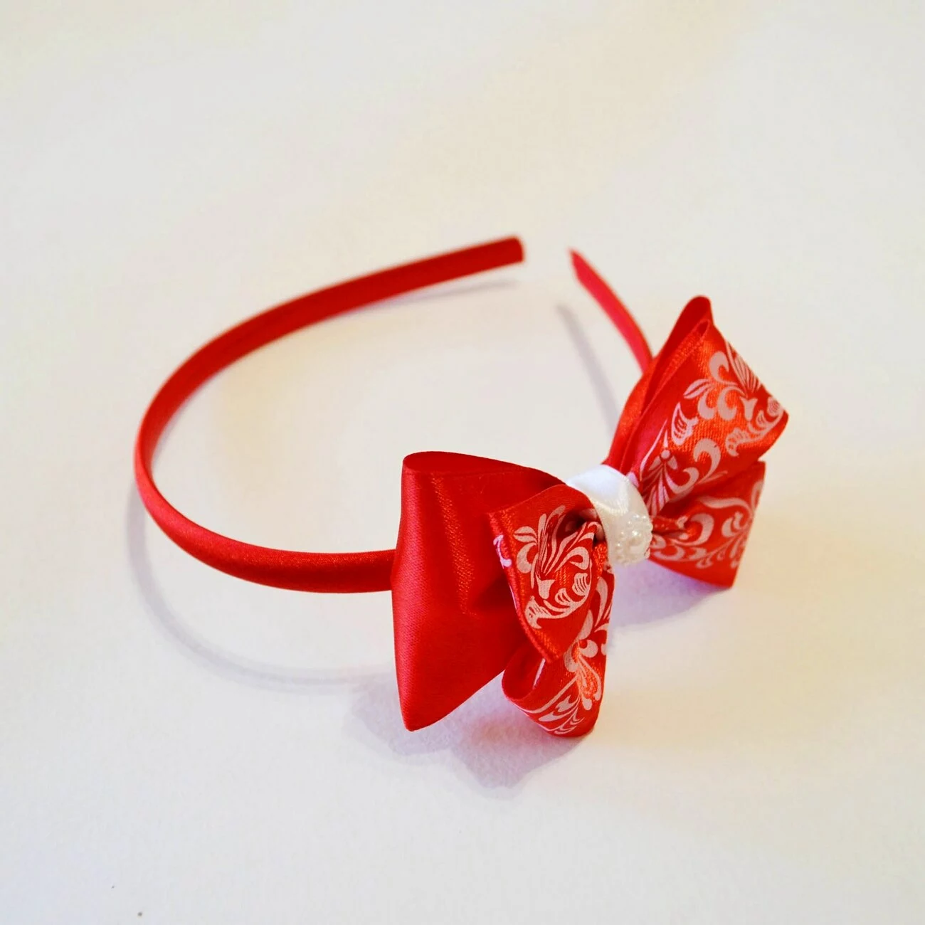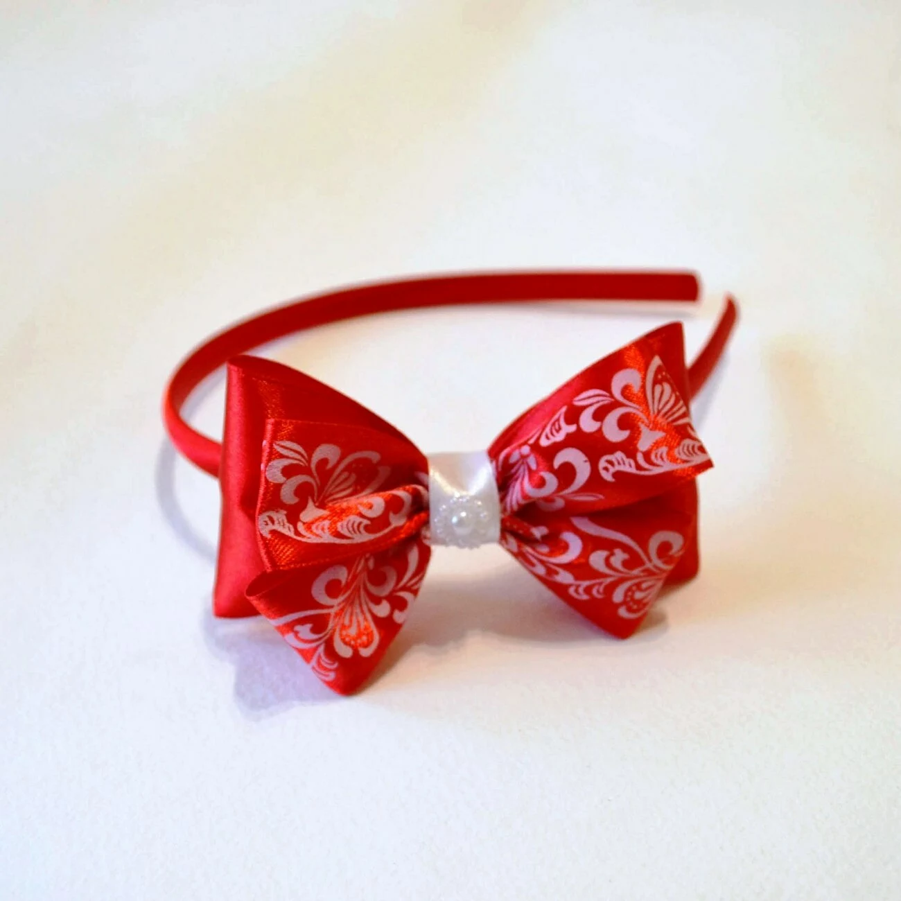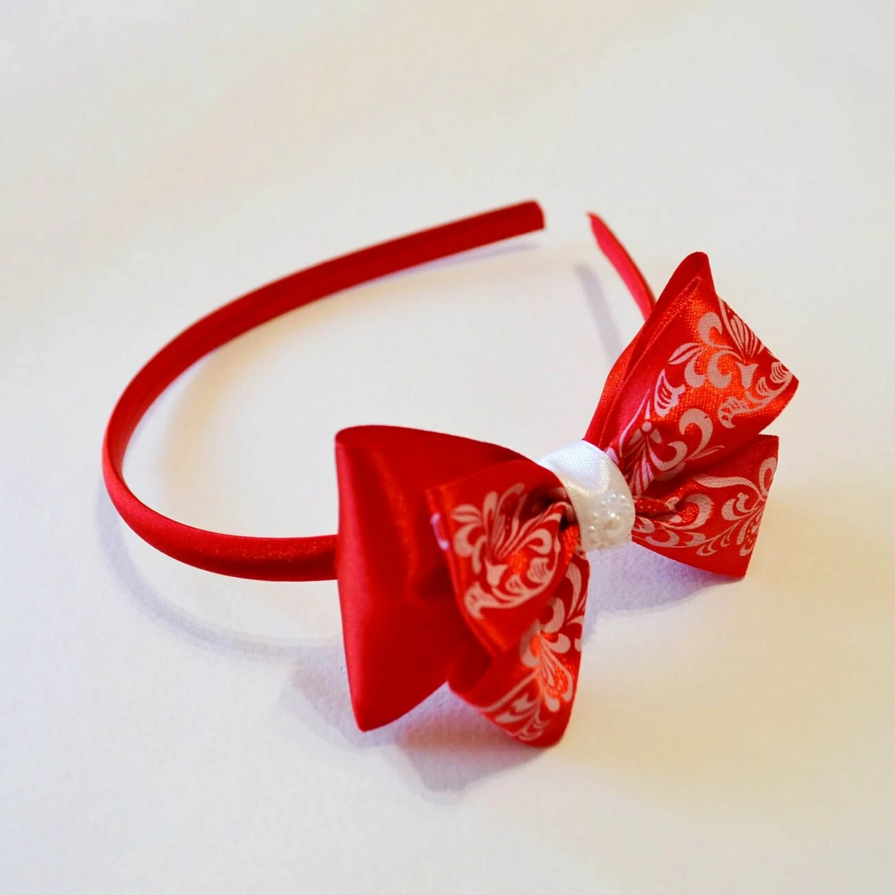 Обруч Бантик ручної роботи із яскравими стрічками червоно-білого кольору від гуртівні Leosouvenir чудово підкреслить Ваш неперевершений смак і стиль.