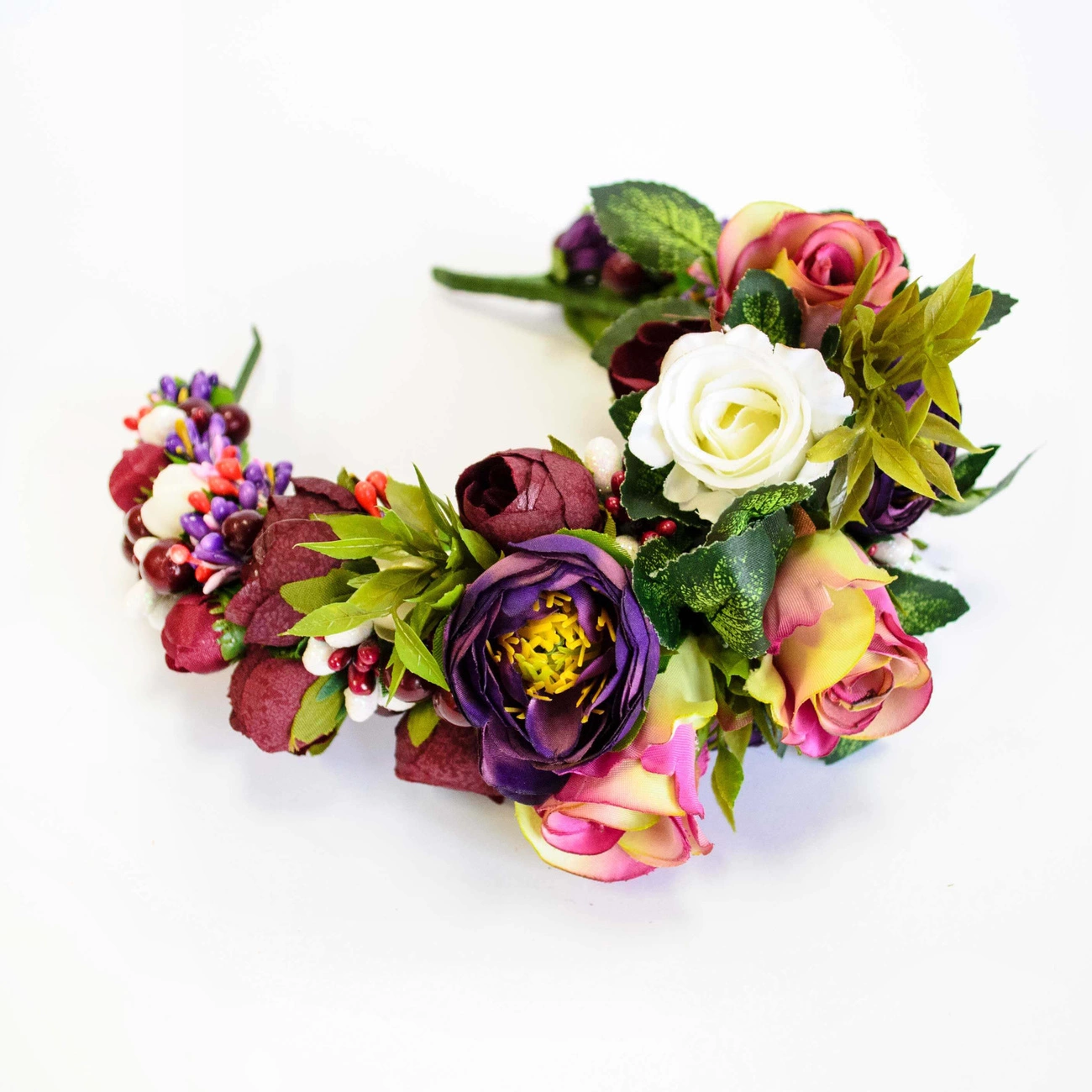 Обруч Марсала ручної роботи із ніжними квітами від гуртівні Leosouvenir чудово підкреслить Ваш неперевершений смак і стиль.