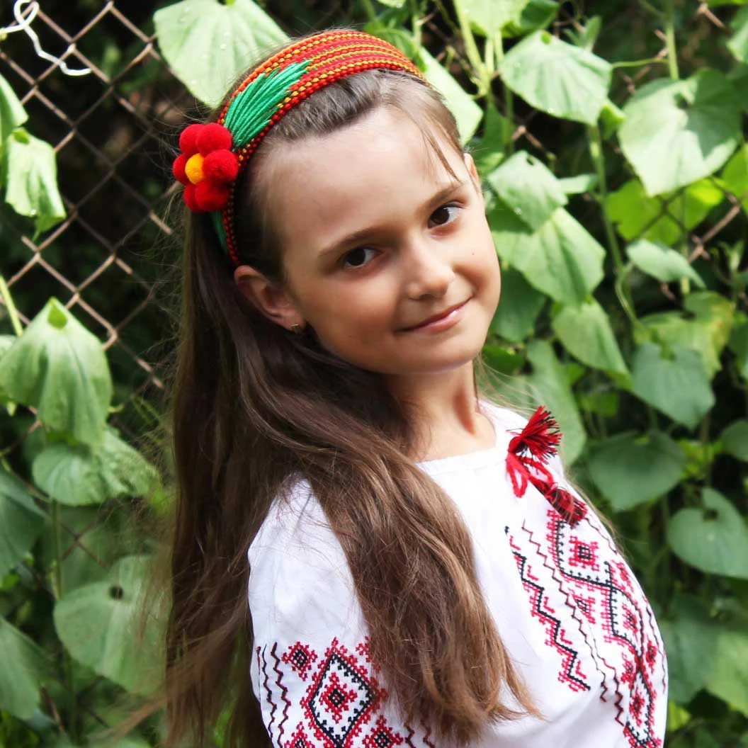 Обруч тканий оранжевий з яскравою квіткою від гуртівні Leosouvenir чудово підкреслить Ваш неперевершений смак і стиль.