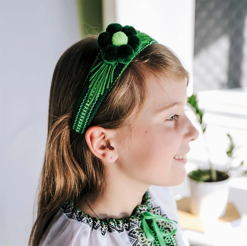 Обруч тканий зелений з яскравою квіткою від гуртівні Leosouvenir чудово підкреслить Ваш неперевершений смак і стиль.