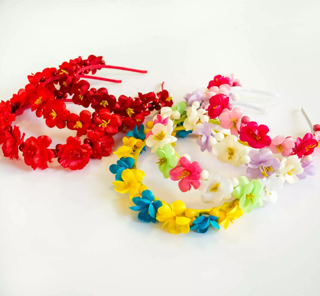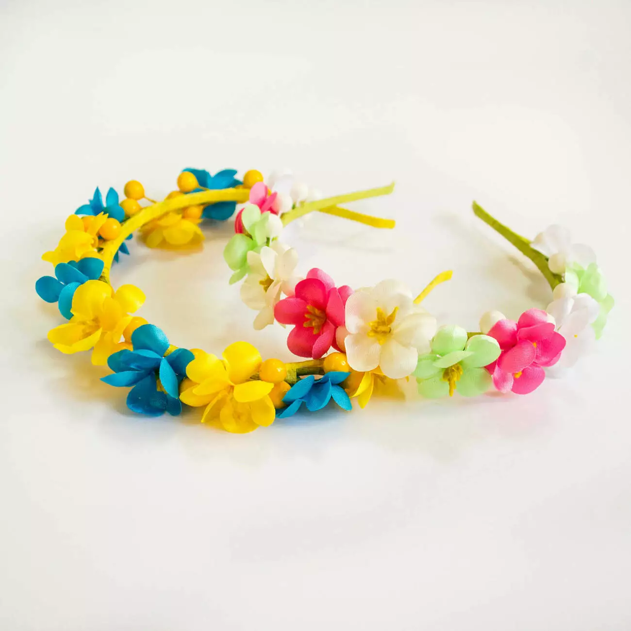 Обруч Веселка ручної роботи з яскравими квіточками та намистинками від гуртівні Leosouvenir чудово підкреслить Ваш неперевершений смак і стиль.