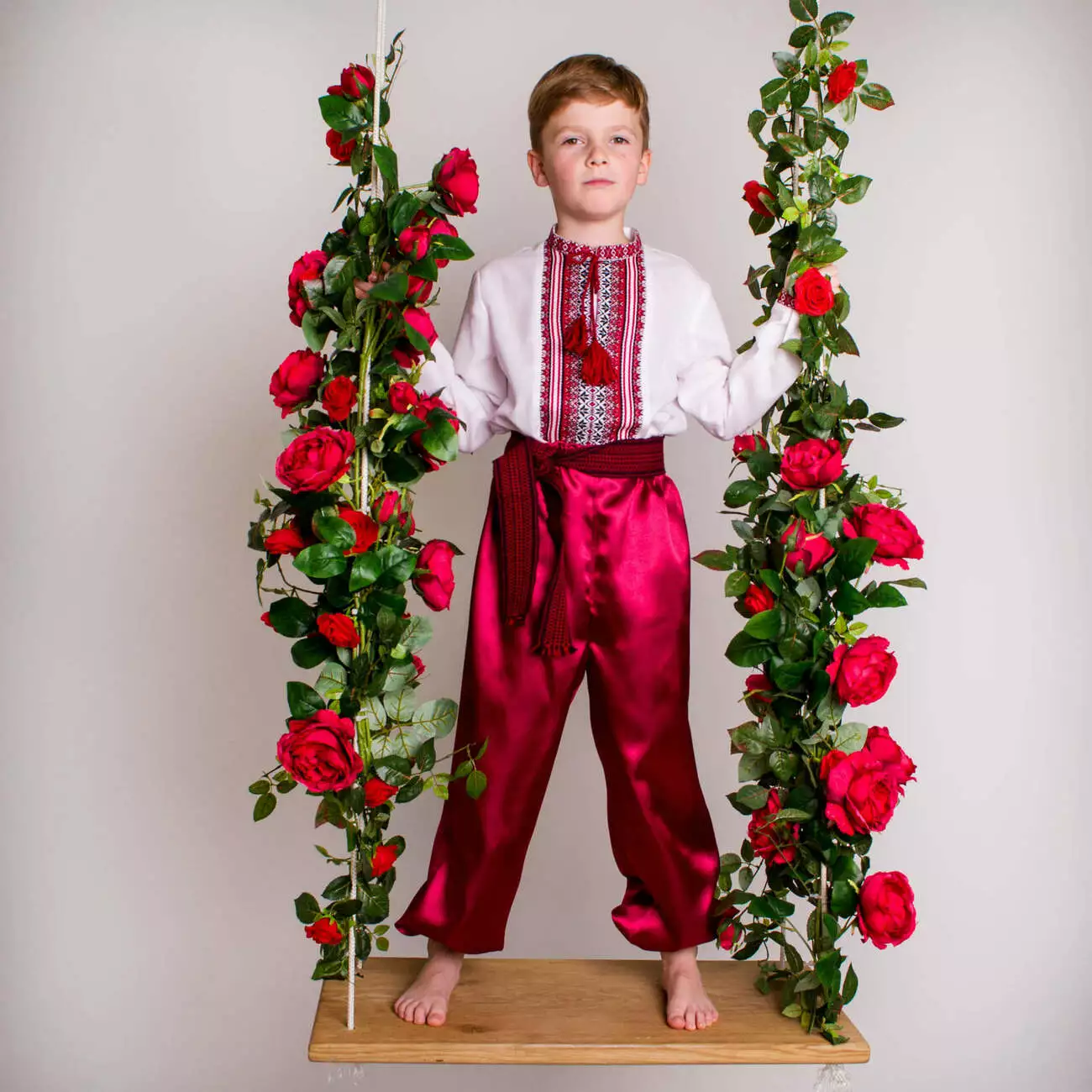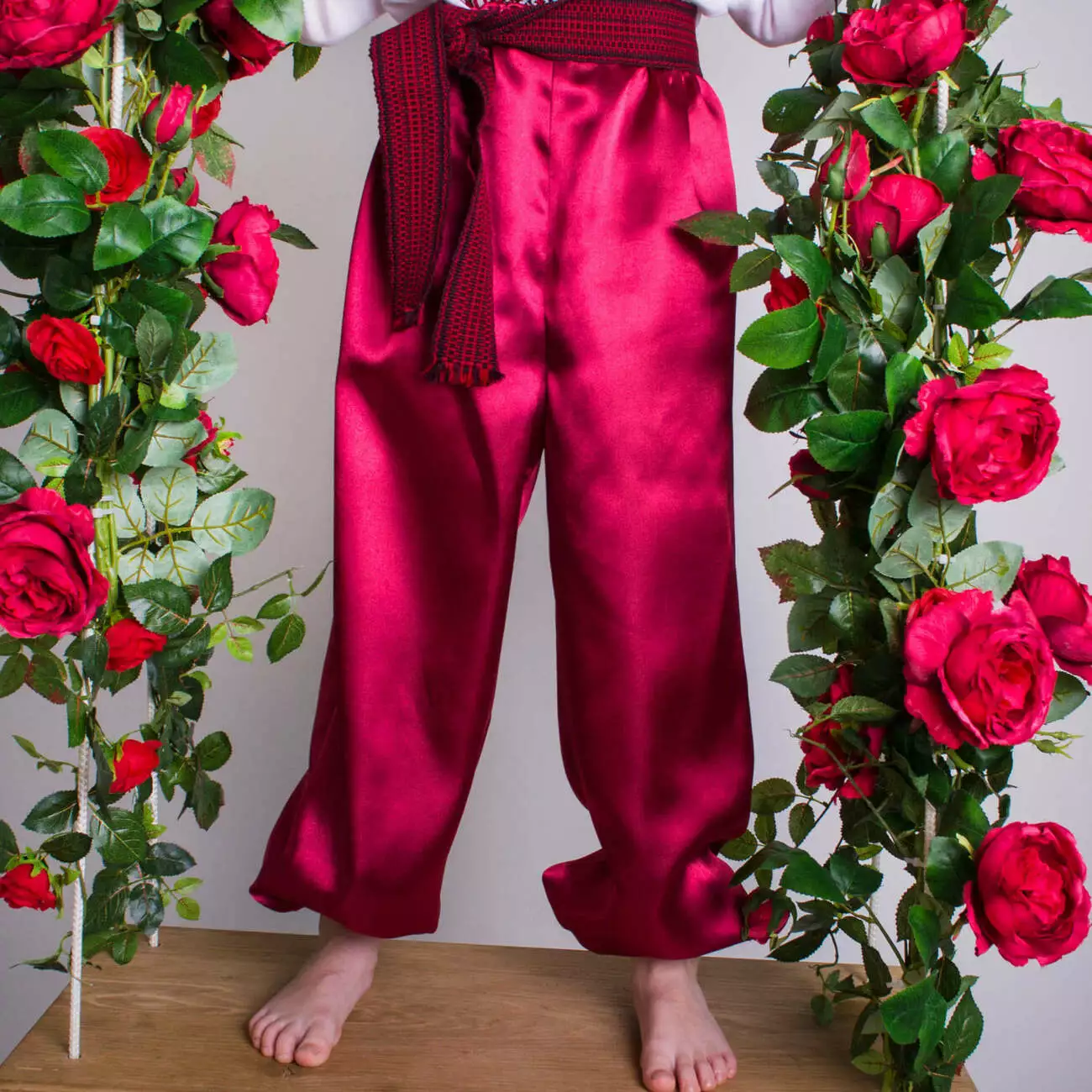 Українські штани-шаровари дитячі бордові кольору від гуртівні Leosouvenir вдало доповнять традиційний вигляд юного Українця.