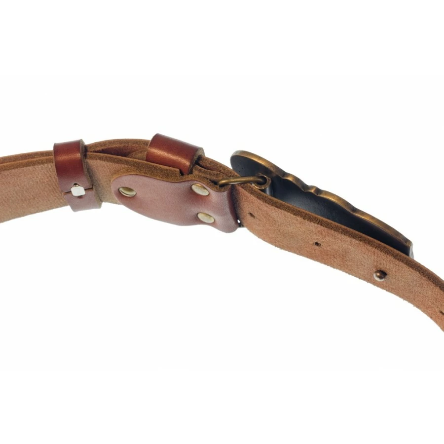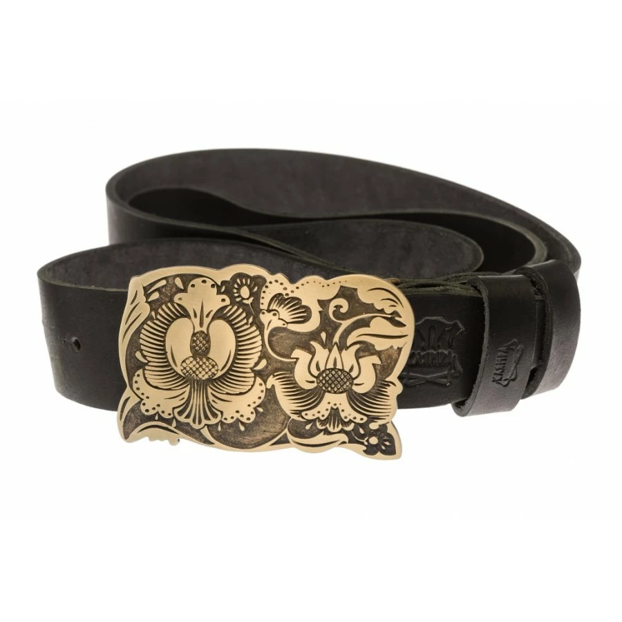 Шкіряний ремінь із золотистою пряжкою із зображенням мотивів полтавської вишивки від гуртівні Leosouvenir чудово доповнить Ваш образ.