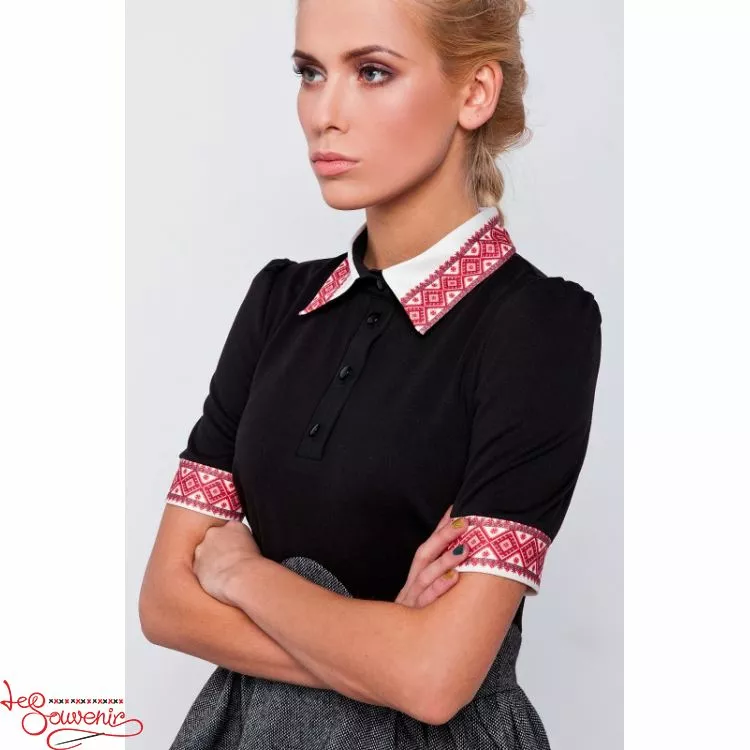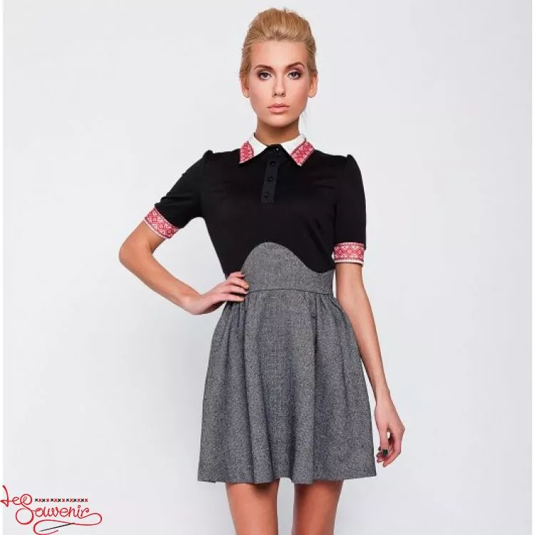 Стильна жіноча сукня чорного кольору із принтом на комірці та рукавах від гуртівні Leosouvenir чудово підкреслить Ваш неперевершений смак і стиль.