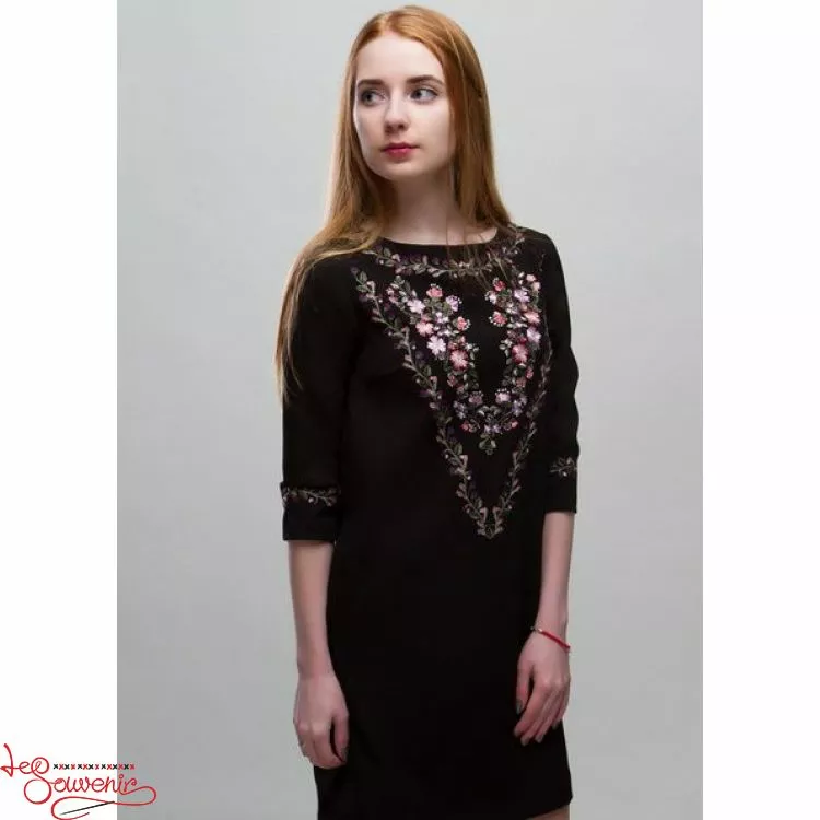 Жіноча елегантна сукня чорного кольору із оригінальною машинною вишивкою від гуртівні Leosouvenir вдало підкреслить Ваш неперевершений смак і стиль.