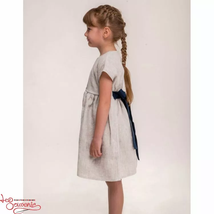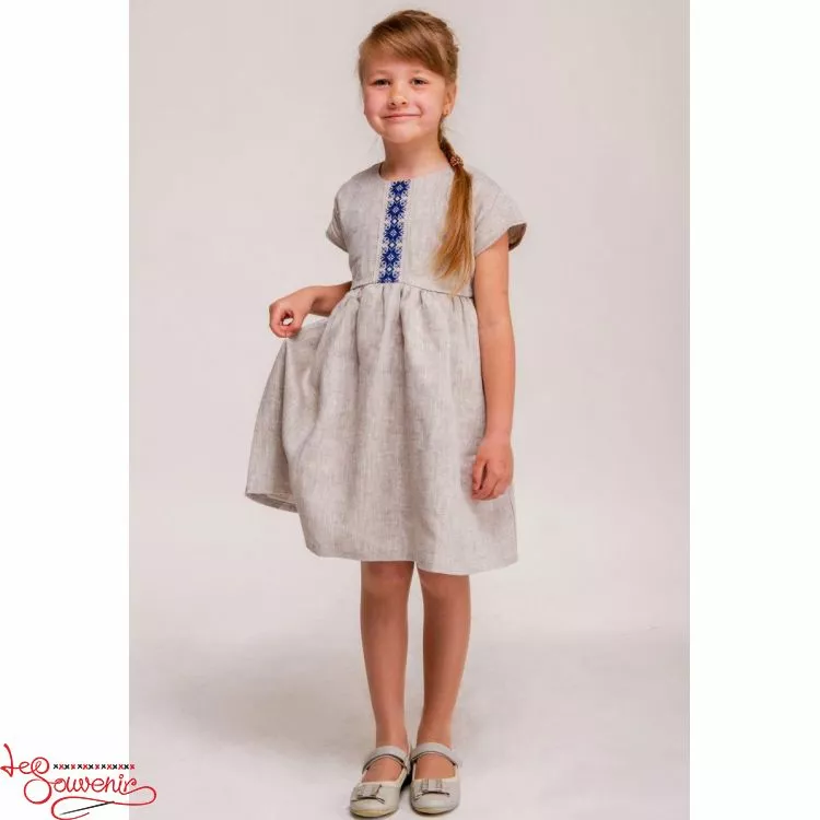 Дитяча сукня сірого кольору, вишита яскравими синіми нитками, від гуртівні Leosouvenir створить неперевершений вигляд Вашої дитини.