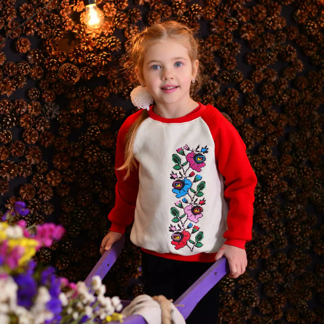 Дитячий теплий світшот із кольоровим вишитими квітами від гуртівні Leosouvenir чудово пасуватиме Вашій малечі.