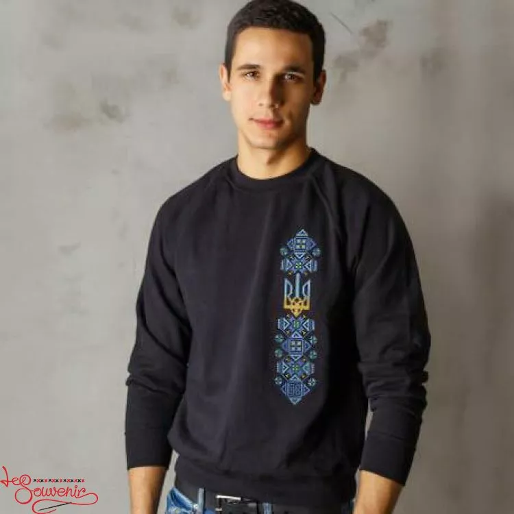 Чоловічий стильний теплий світшот із красивою вишивкою насірому тлі від гуртівні Leosouvenir чудово зігріє Вас у холодну погоду.