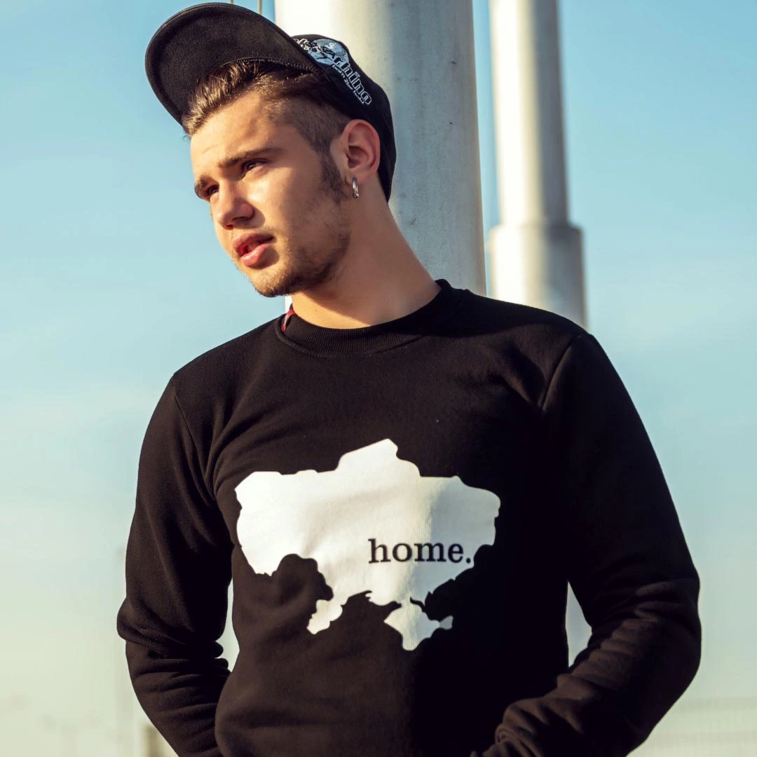 Чоловічий стильний теплий світшот із принтованим зображенням карти України на чорному тлі від гуртівні Leosouvenir чудово зігріє Вас у холодну погоду.
