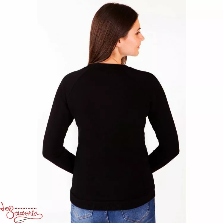 Жіночий стильний теплий світшот із яскравим принтованим зображенням України на чорному тлі від гуртівні Leosouvenir чудово зігріє Вас у холодну погоду.