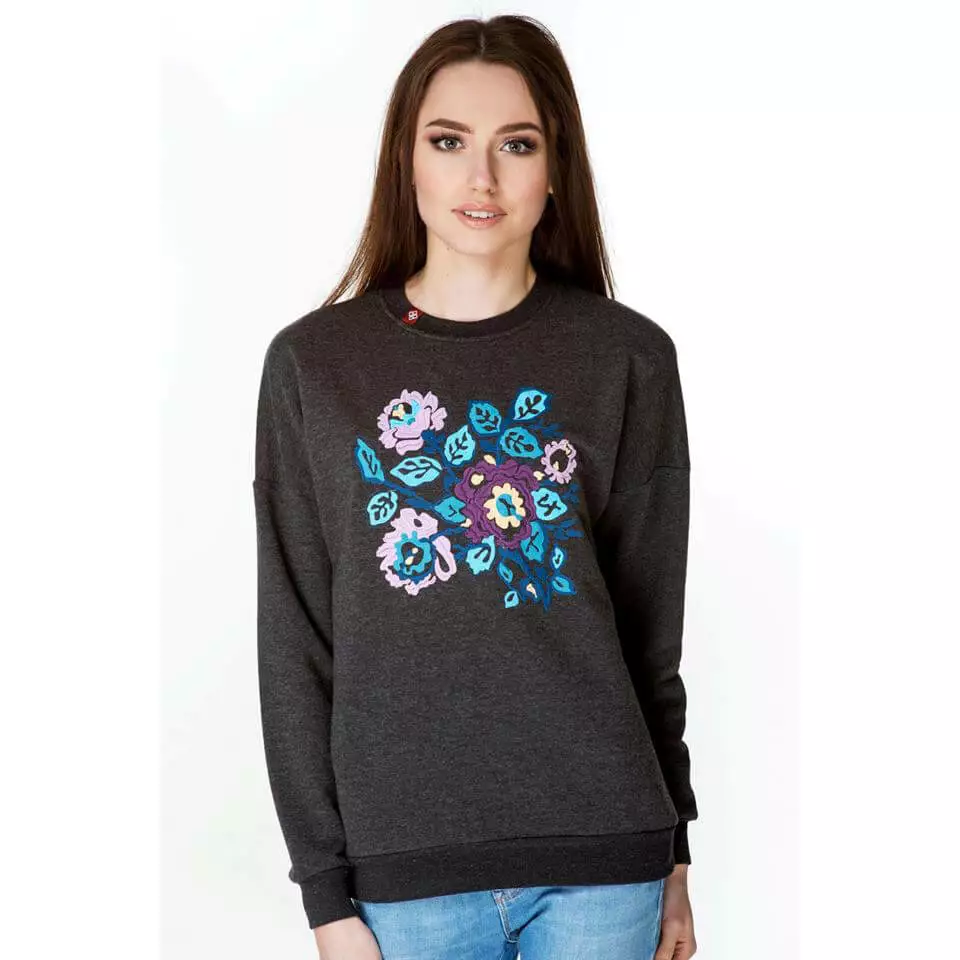 Жіночий стильний теплий світшот із яскравою квітковою вишивкою на сірому тлі від гуртівні Leosouvenir чудово зігріє Вас у холодну погоду.
